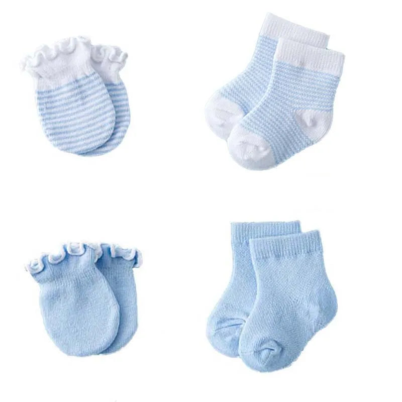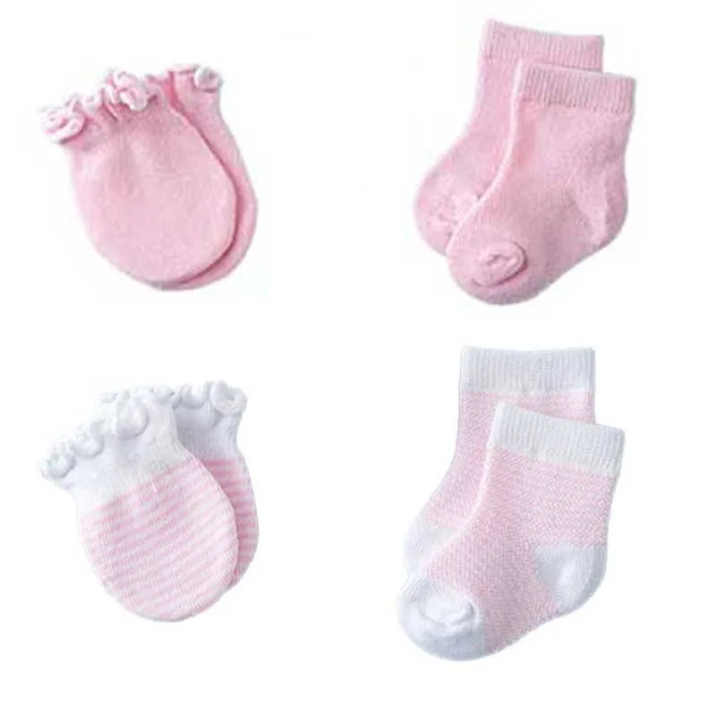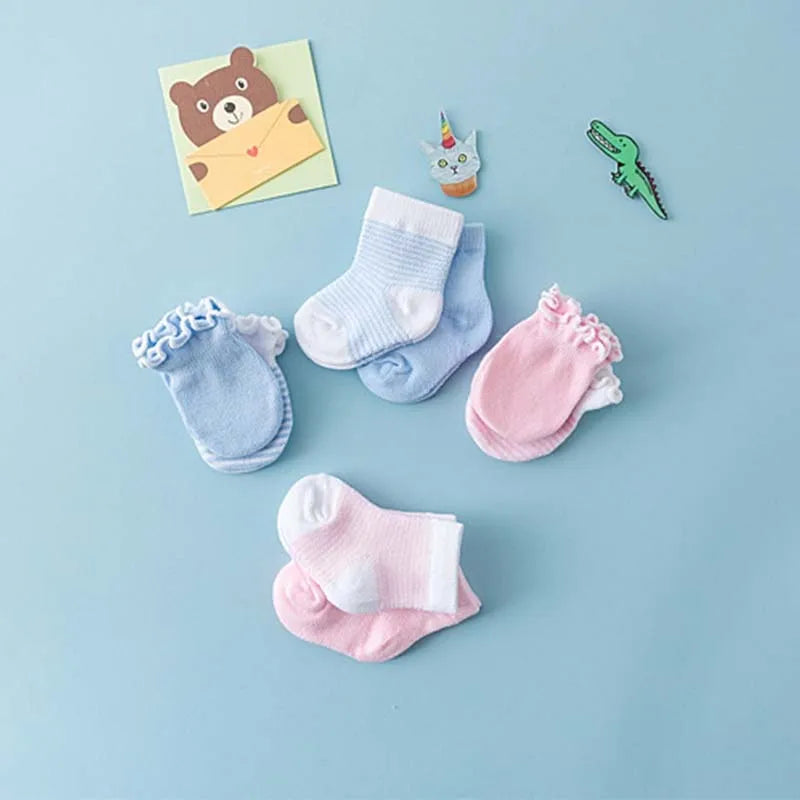 Cotton Baby Socks & Anti-Scratch Mittens Set - 4 Pair Newborn Accessories for Spring & Photo Props
