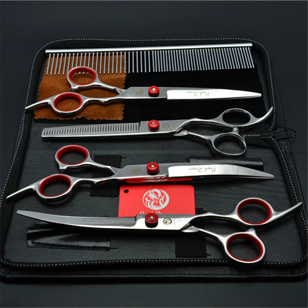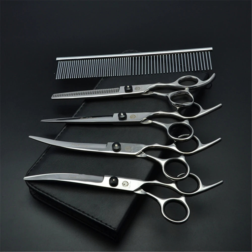 Dog Grooming Scissors Set - Stainless Steel Cutting, Thinning & Curved Shears, 6" & 7" Pet Hair Trimming Kit