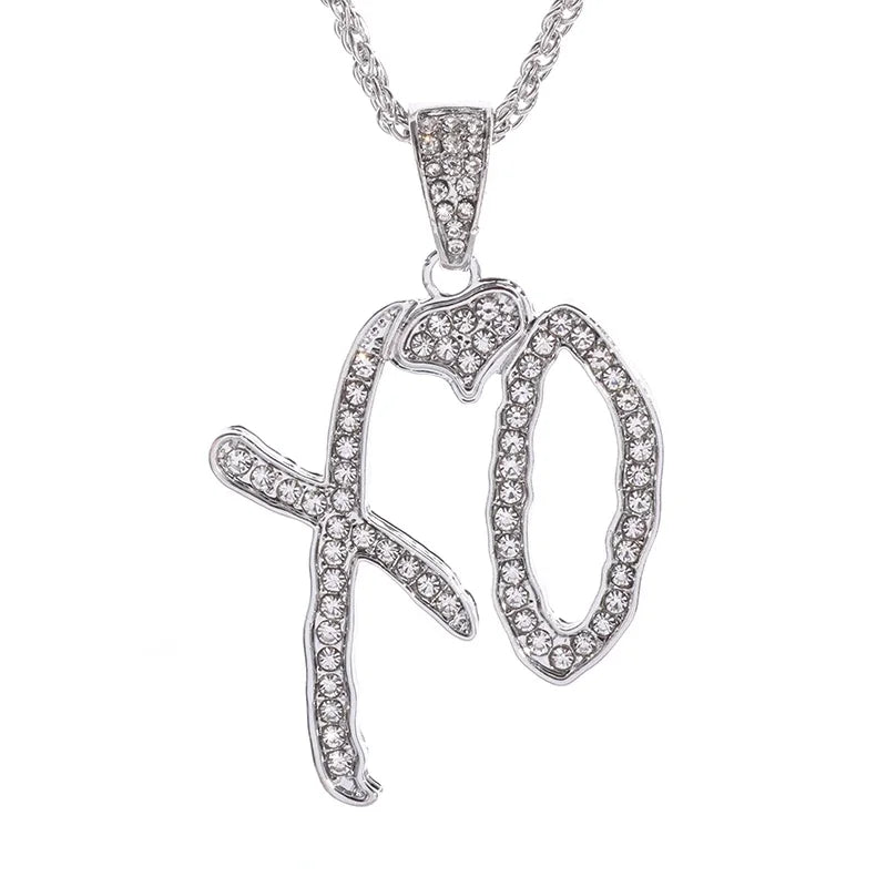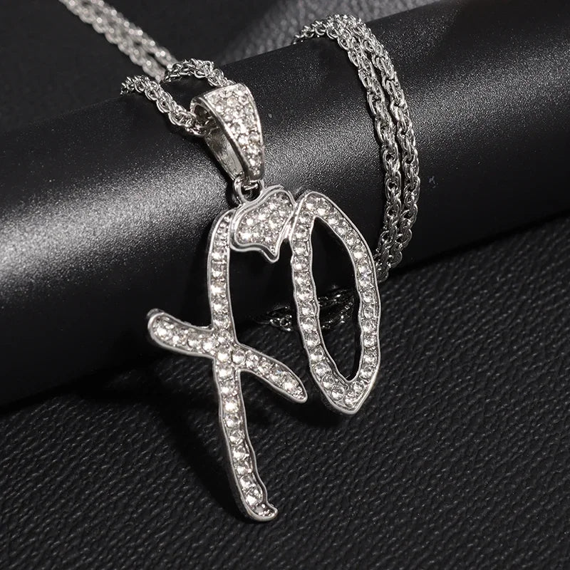 Creative Bubble Letter XO Pendant Necklace Inlaid with White Zircon for Men - Casual Party Fashion Jewelry