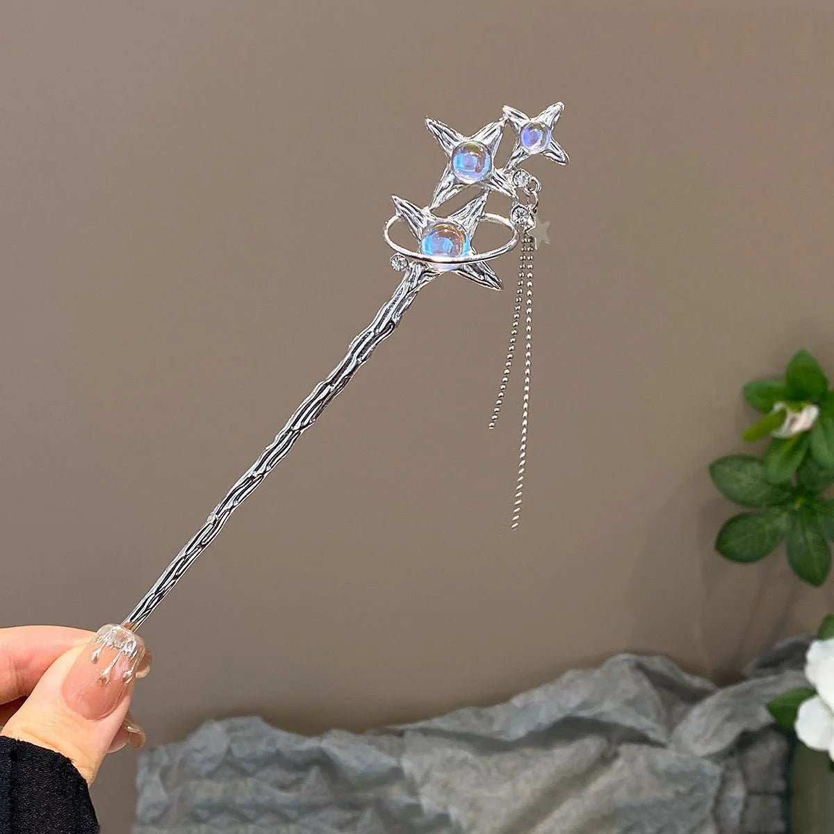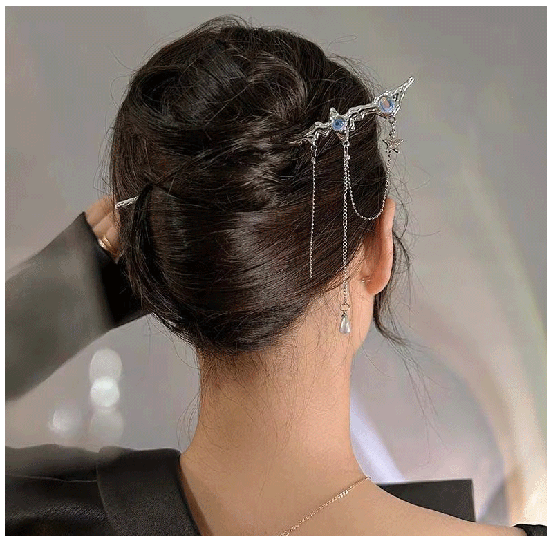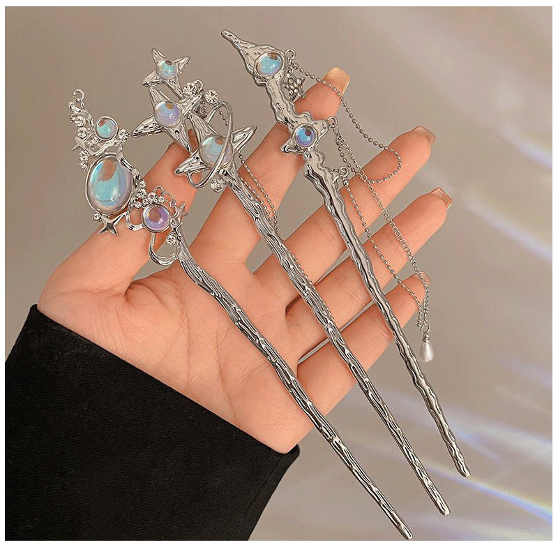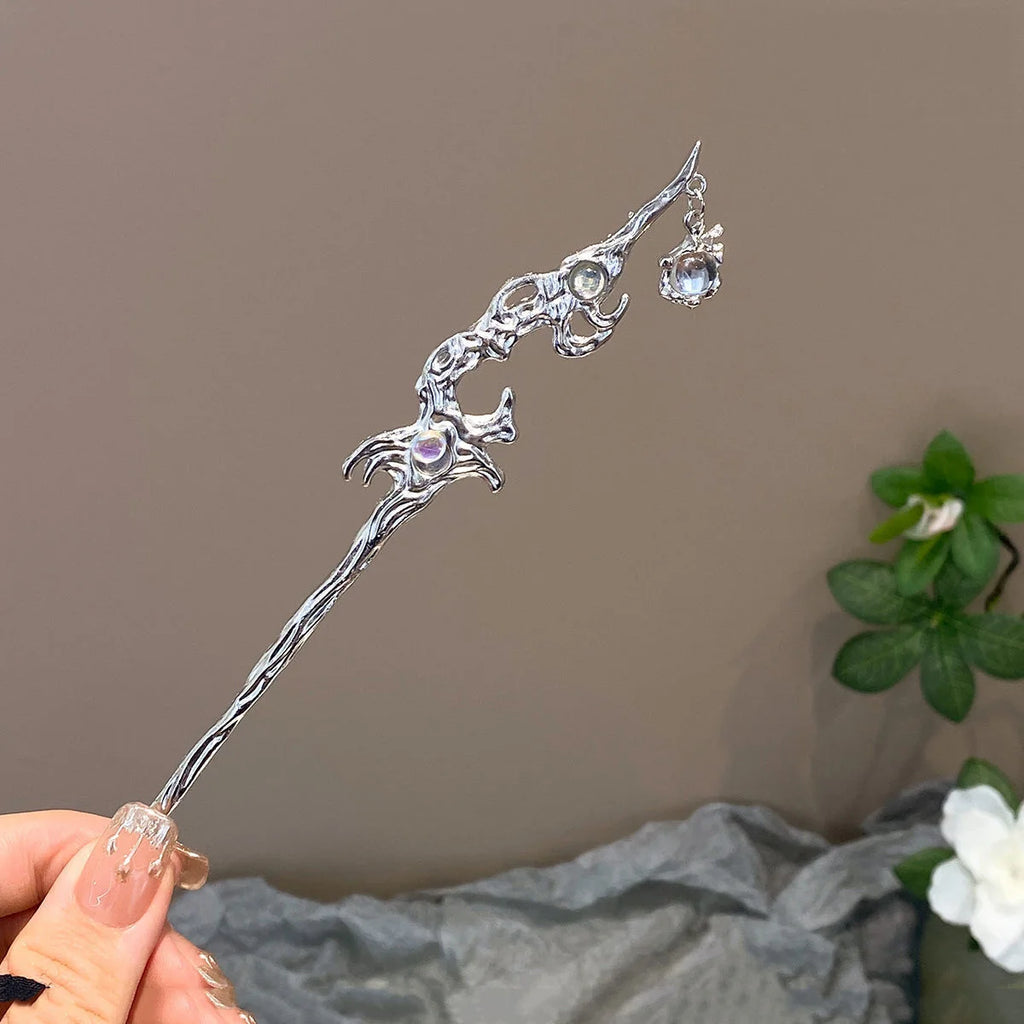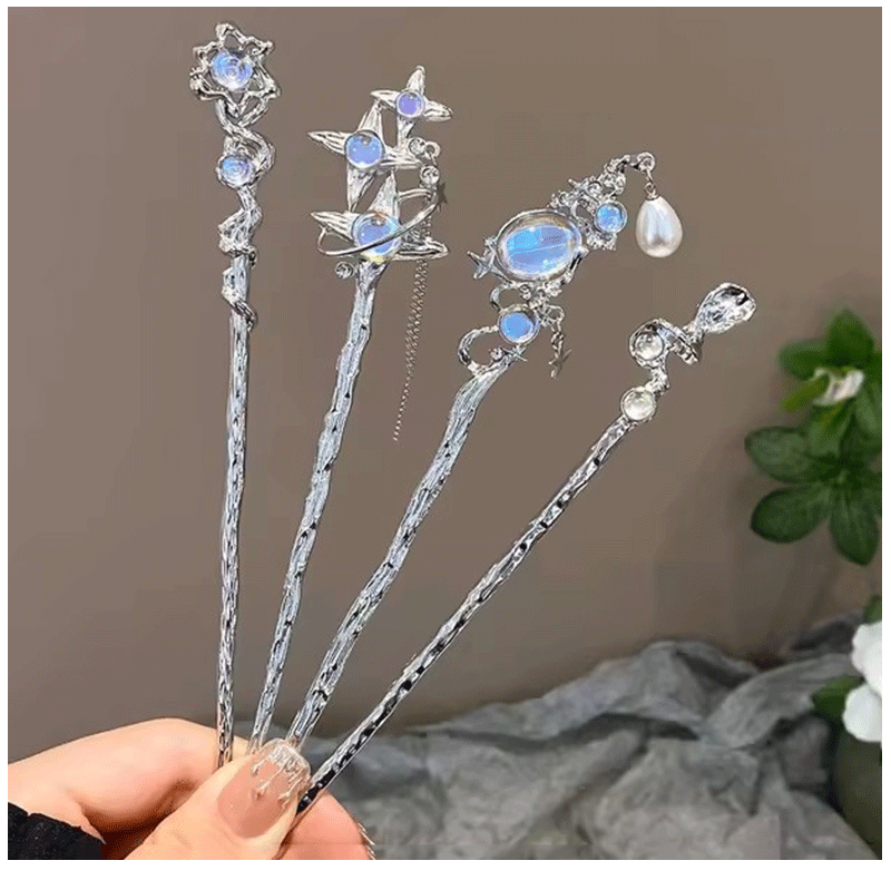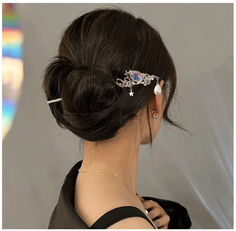 Chinese Style Moonstone Hair Stick Clip - Women's Romantic Jewelry for Daily & Party Wear