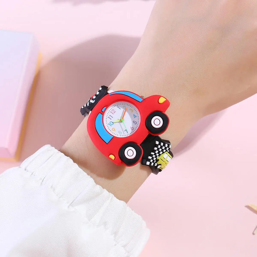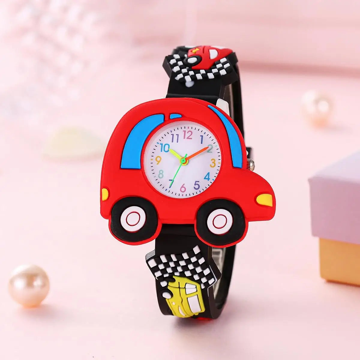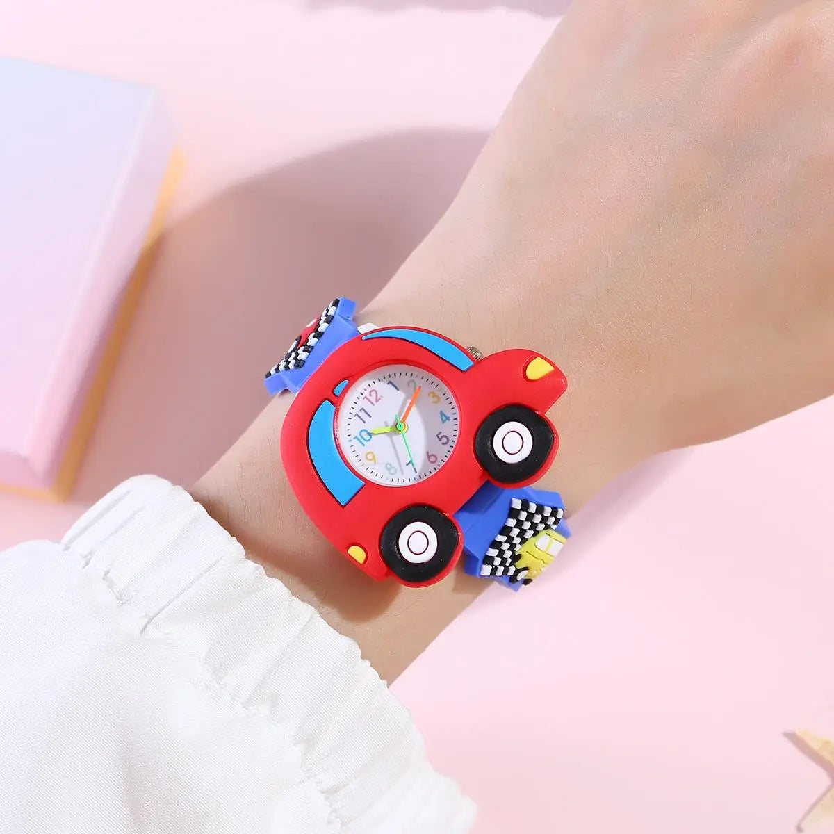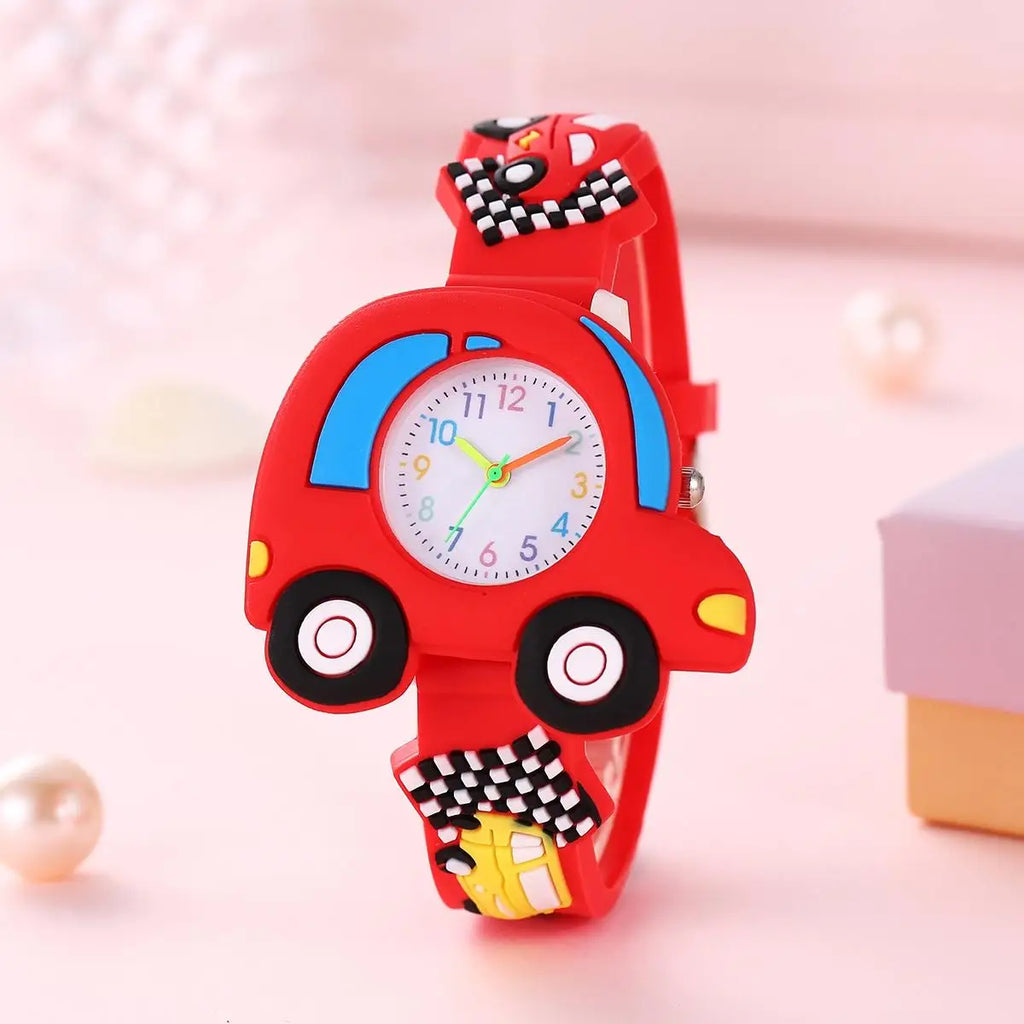 3D Cartoon Racing Car Silicone Kids Watch with Pattern Design