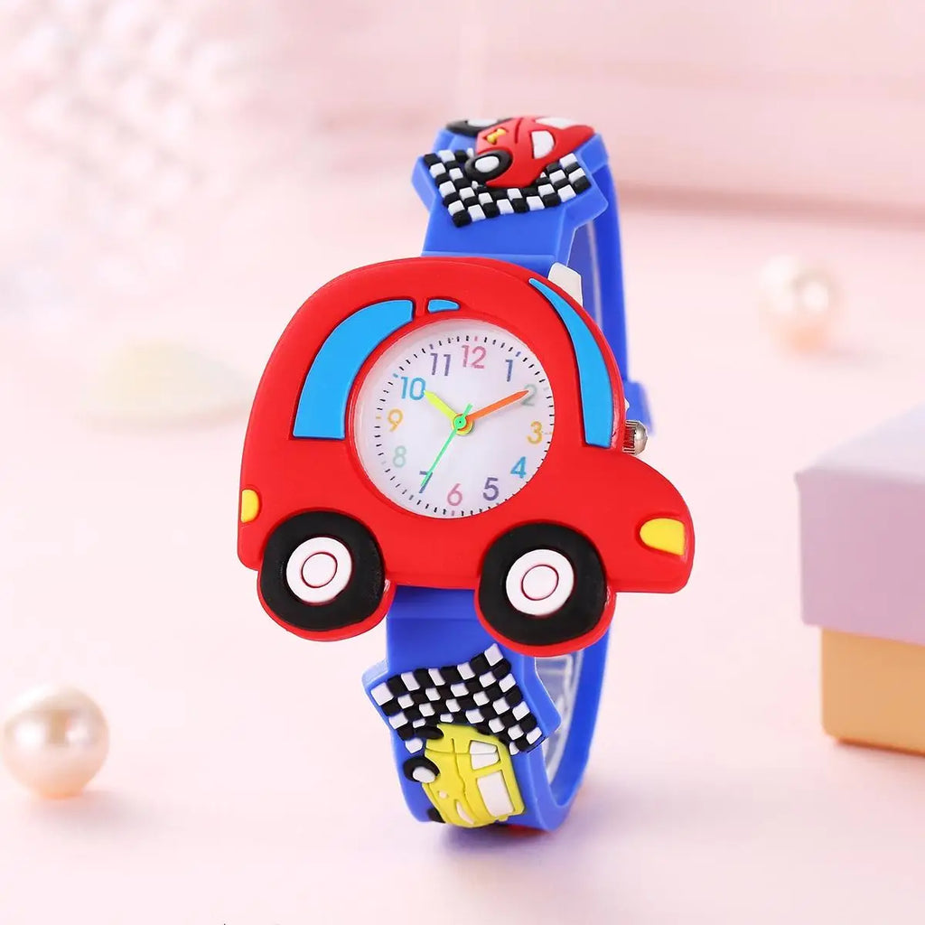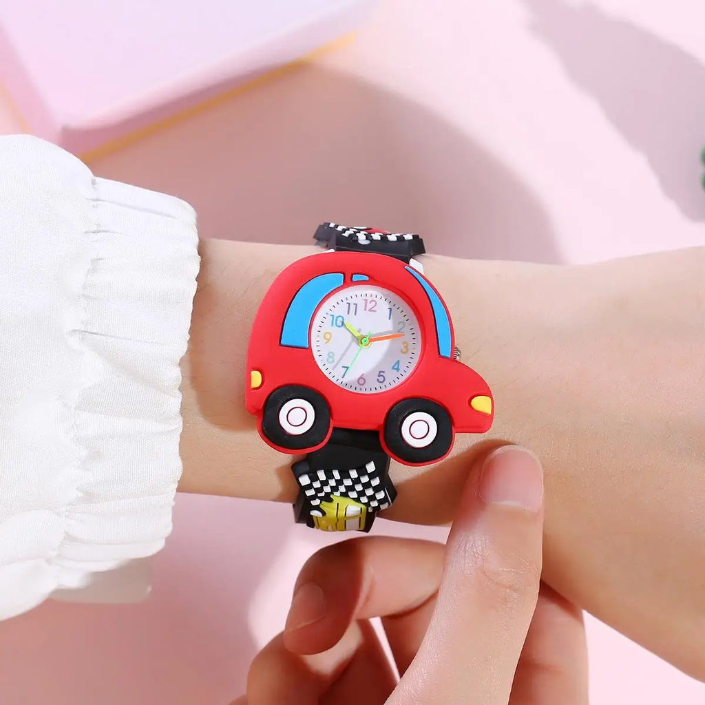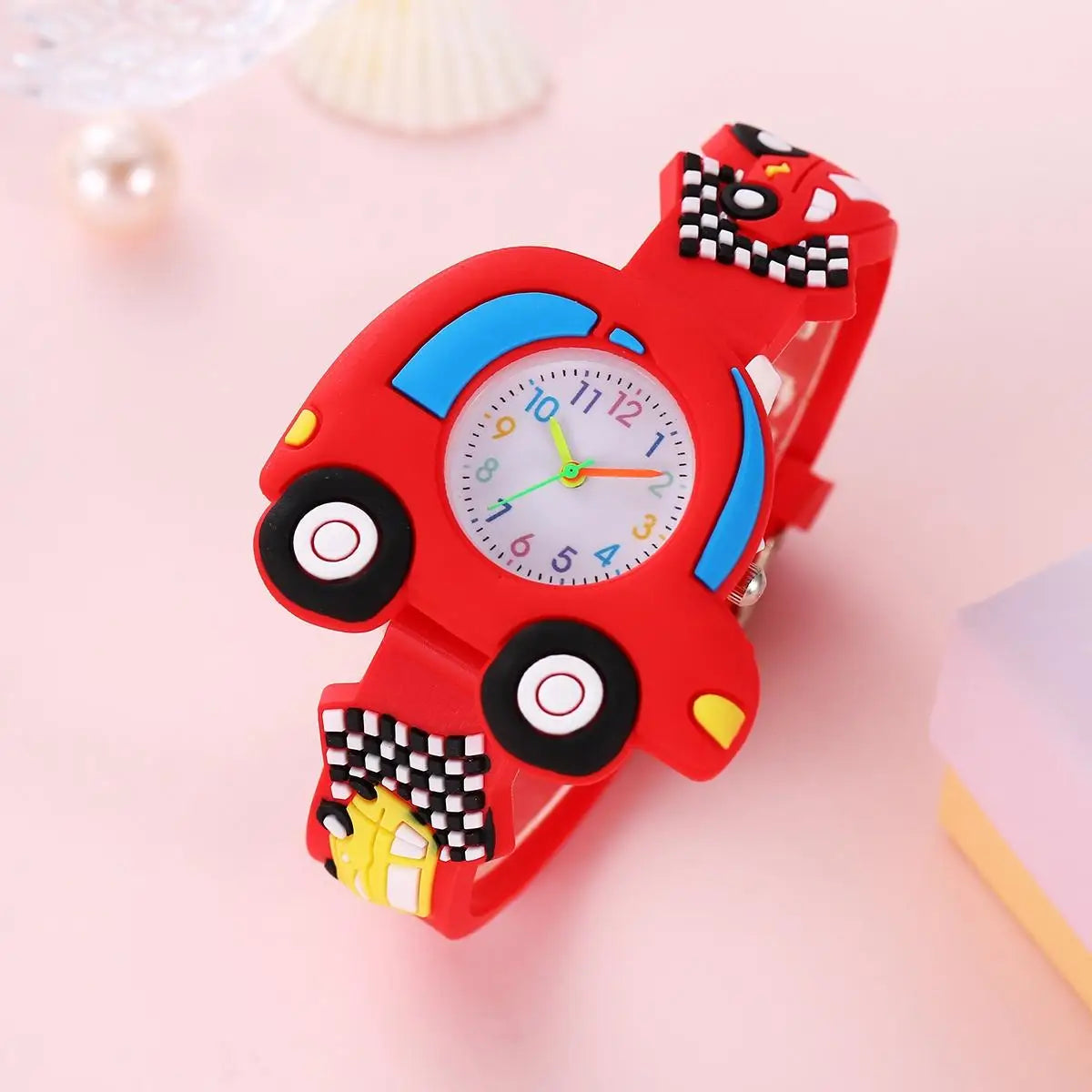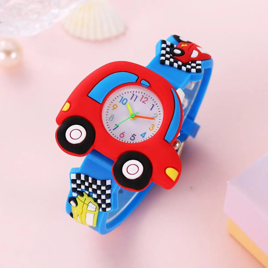 3D Cartoon Racing Car Silicone Kids Watch with Pattern Design