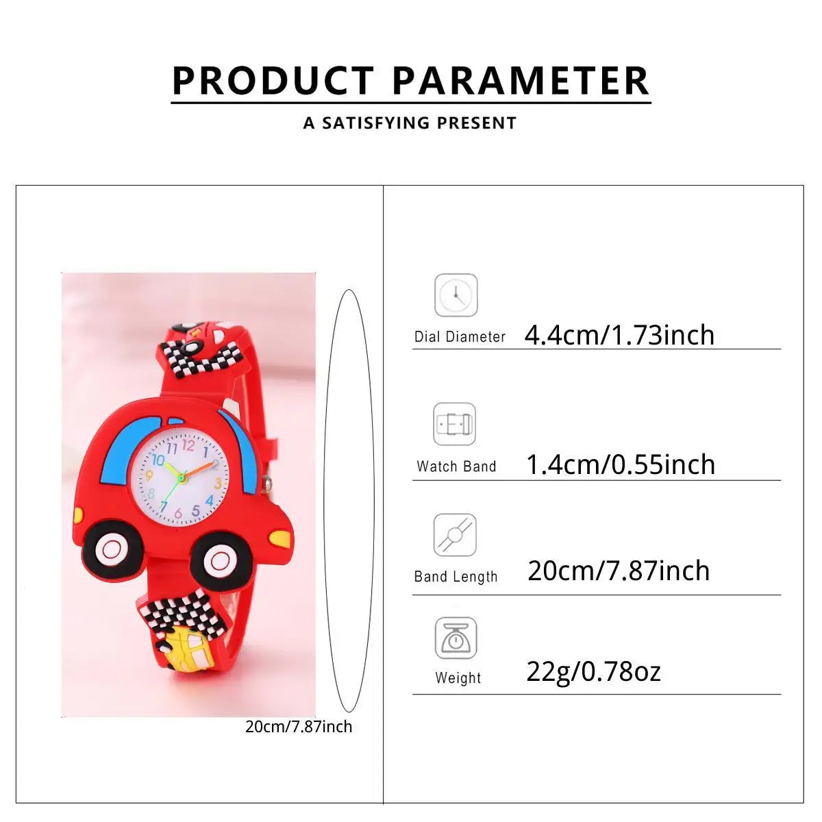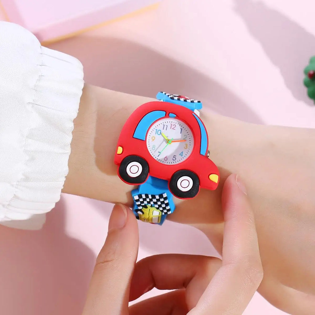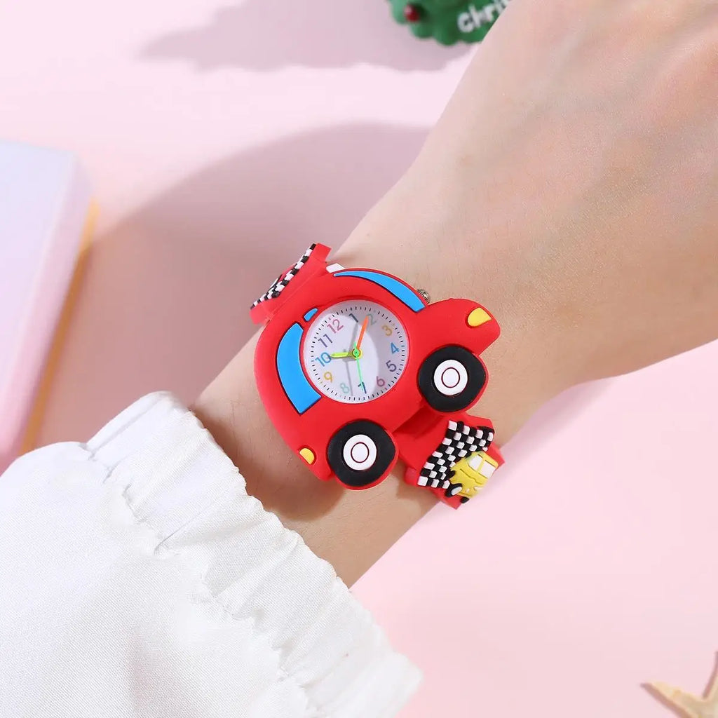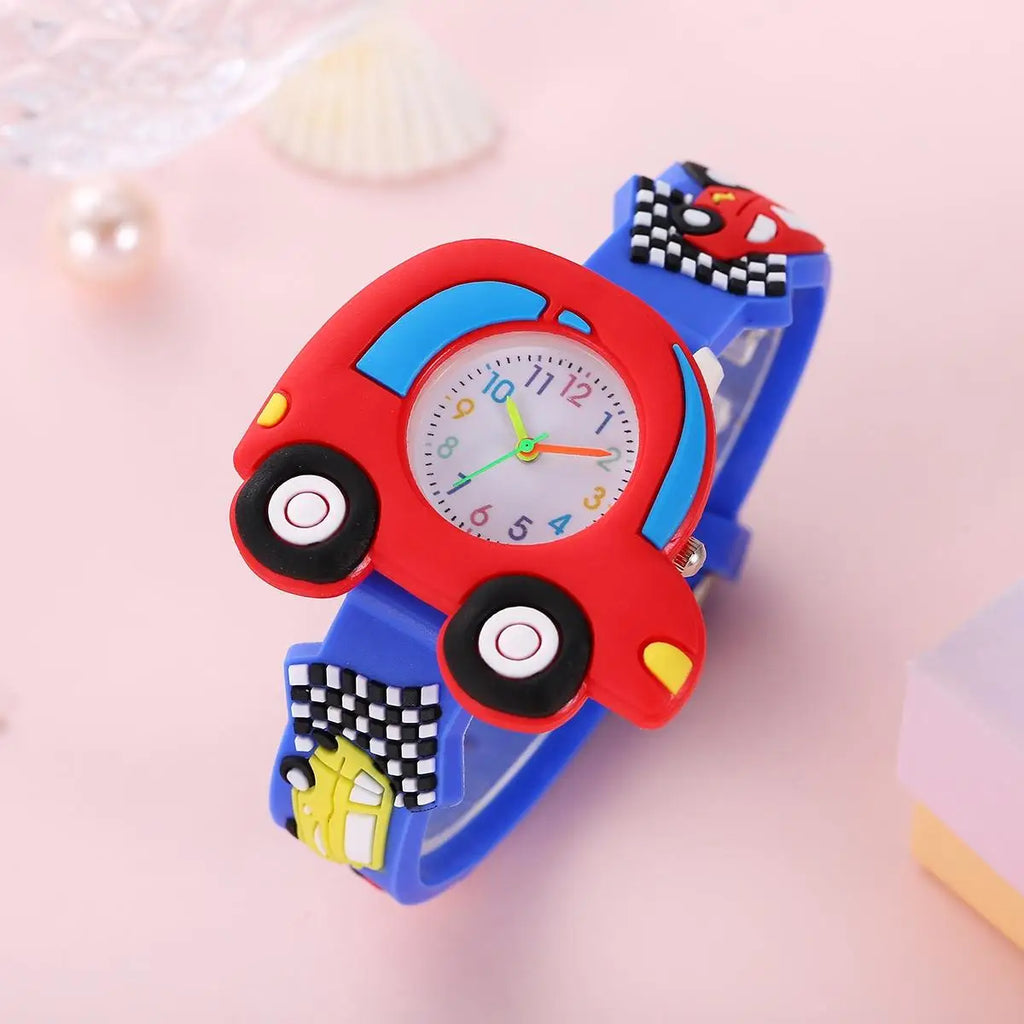 3D Cartoon Racing Car Silicone Kids Watch with Pattern Design
