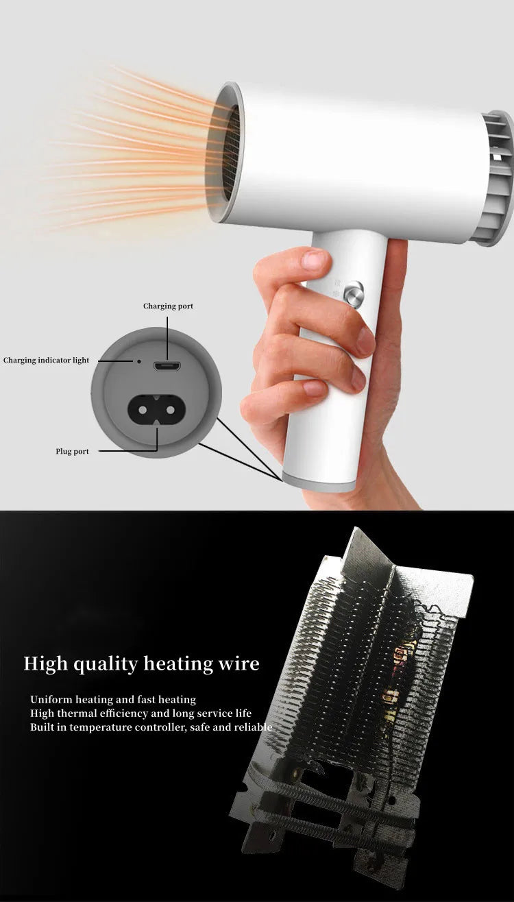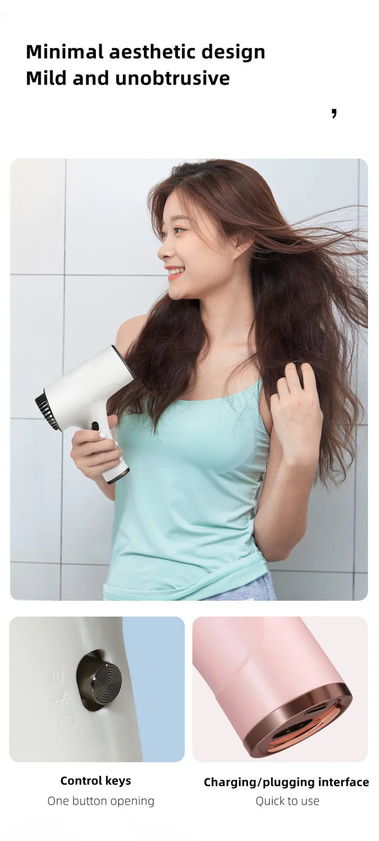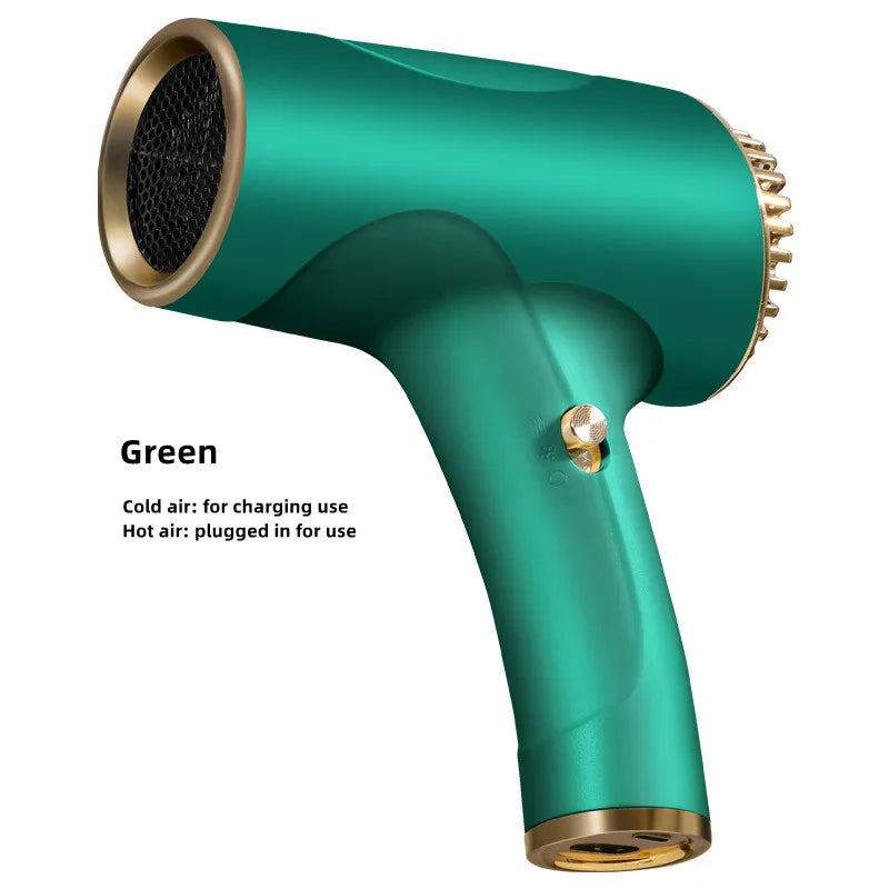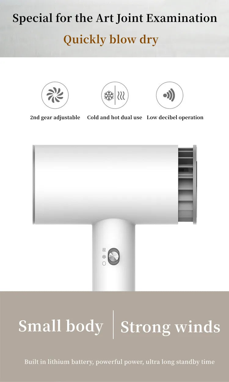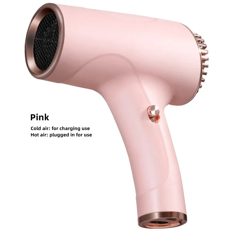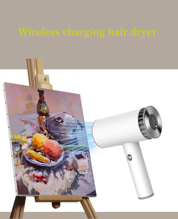 Compact Wireless Hair Dryer 30000 RPM High Speed Cool/Hot Air USB Rechargeable for Home, Dorm, Travel