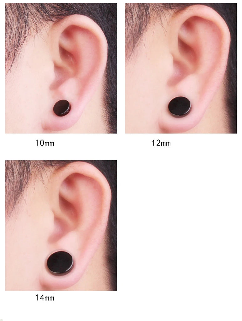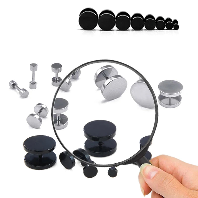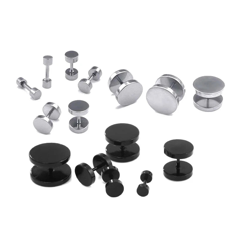 These classic dumbbell-style earrings are versatile enough for any occasion, whether you're embracing a punk aesthetic or a more refined look. The earrings come in sizes from 2mm to 14mm, allowing you to customize your style to preference.