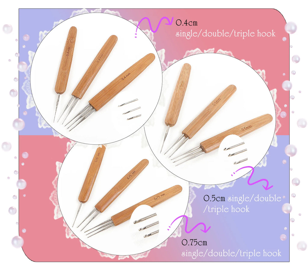 Crochet Hooks Set 0.4mm Multiple Sizes for Knitting & Dreadlocks - Needle Handmade Set