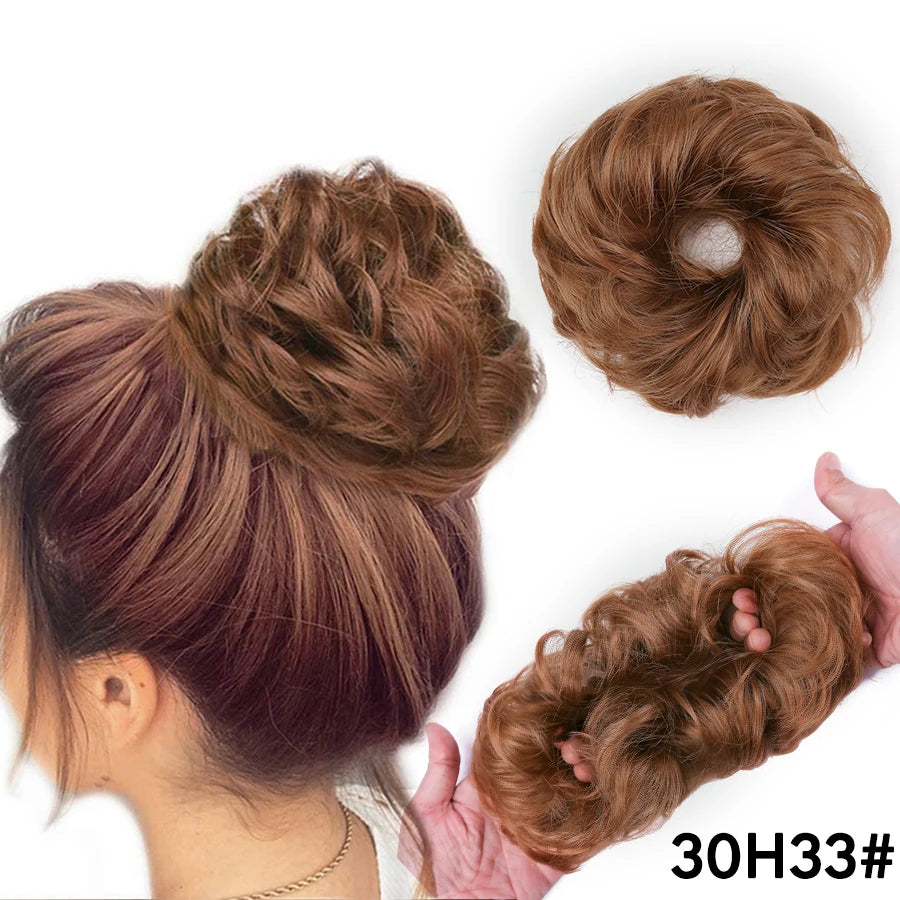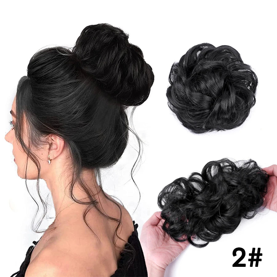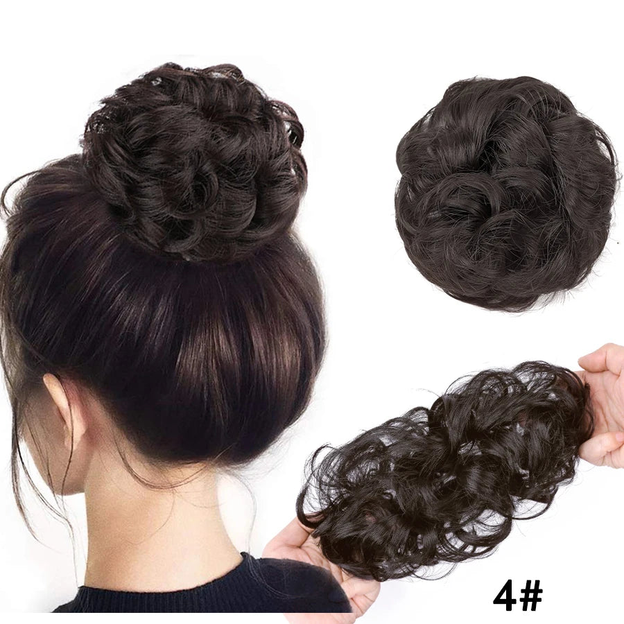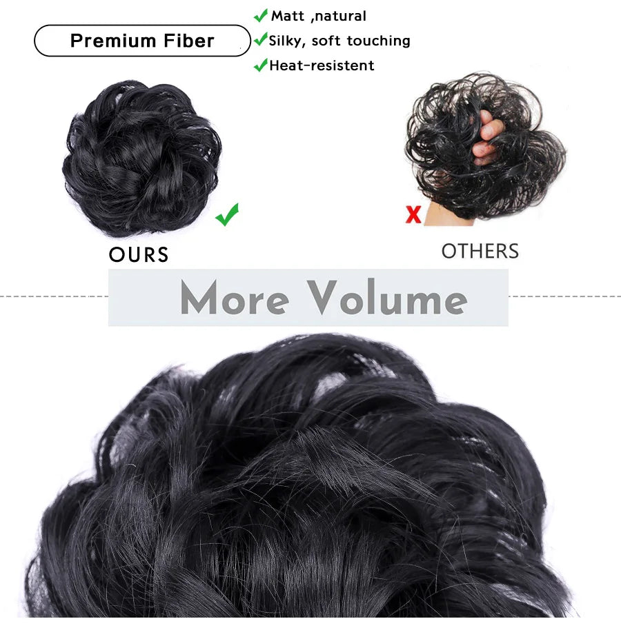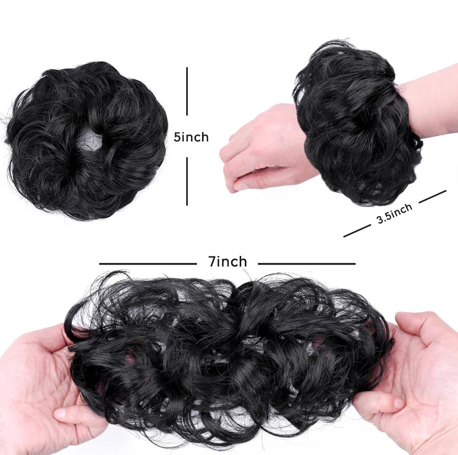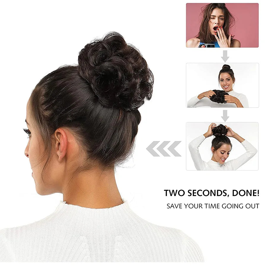 Curly Hair Bun Scrunchy Extensions - Elastic Tousled Chignon Ponytail Updo Hairpiece