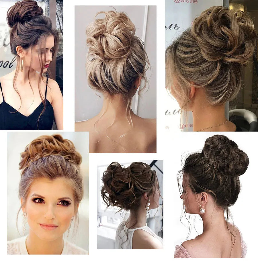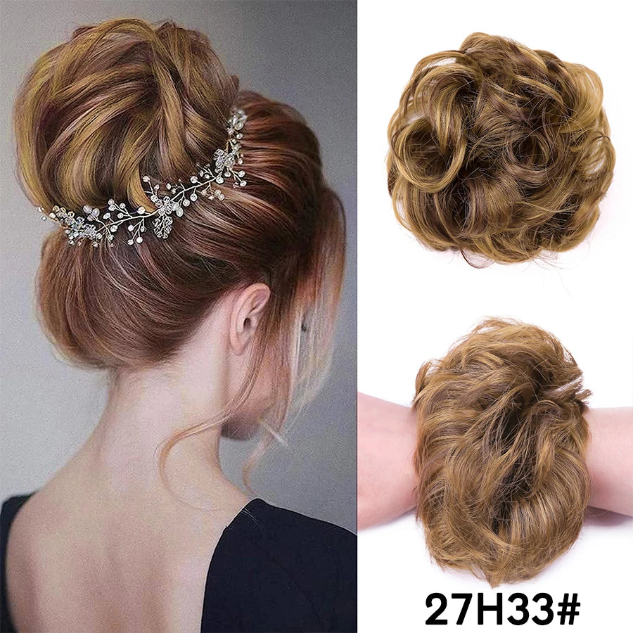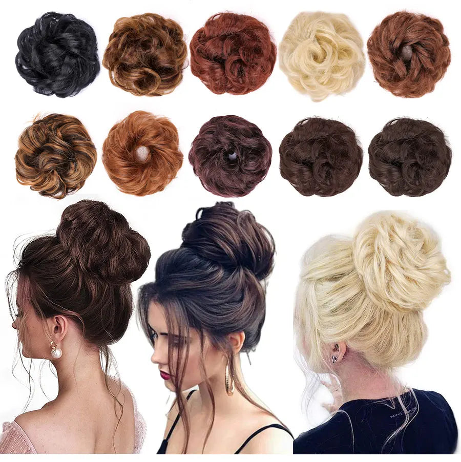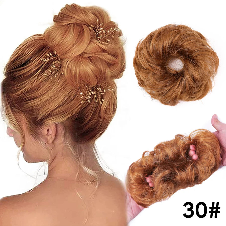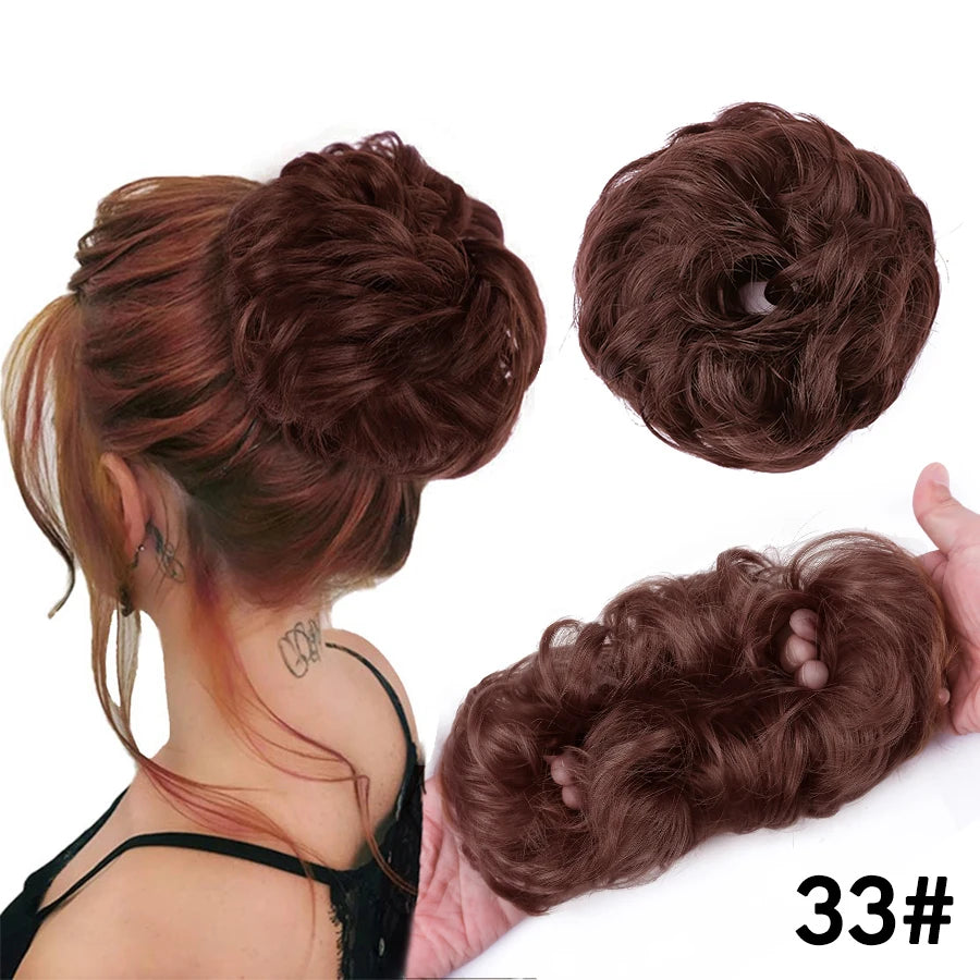 Curly Hair Bun Scrunchy Extensions - Elastic Tousled Chignon Ponytail Updo Hairpiece
