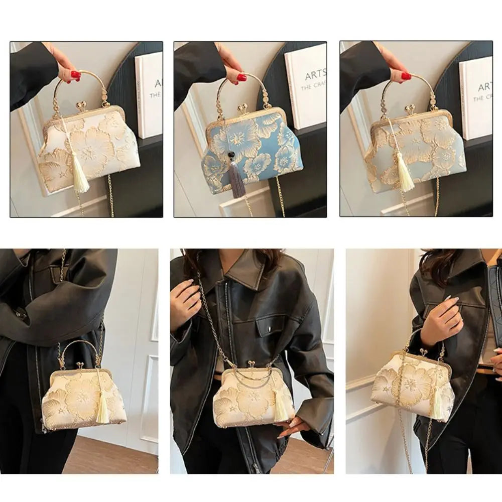 Elevate your style with this exquisite Chinese Style Handbag, ideal for parties and elegant occasions. Crafted from luxurious silk cloth, this bag offers a soft touch and refined finish. Its unique bucket shape and tassel decoration make it a standout accessory for weddings and dinners alike. Designed for women seeking fashion-forward pieces, this handbag comes in a versatile khaki or eye-catching blue. The soft milk cotton construction and polyester lining ensure durability without sacrificing elegance. Measuring 21x15x8 cm, it’s the perfect size for your essentials. Secure your belongings with the convenient hasp closure.