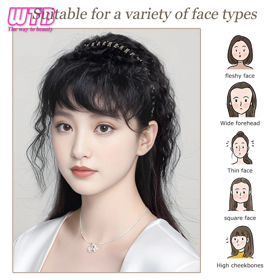 Curly Hairband Wig with Natural-Looking Bangs for Women - Covers White Hair, Thin Bangs