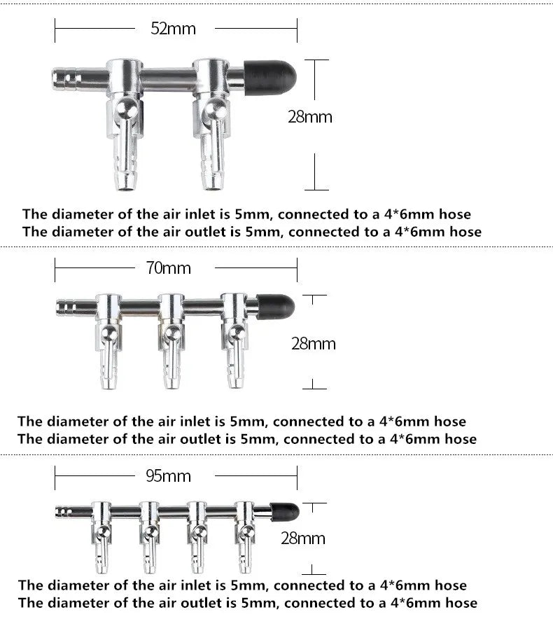 Ideal for managing oxygen levels, this air valve is suitable for use with inner diameter 4mm soft pipes. Whether you need a single or multiple valve system, options are available from 1 to 8 valves to meet your aquarium needs.