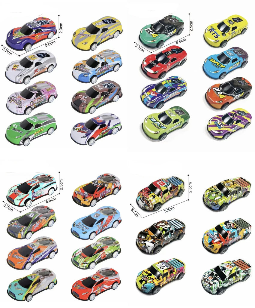 Experience the thrill of racing with our dynamic Pull Back Cars, perfect for enthusiasts of all ages. These cars are crafted from durable plastic and come in vibrant colors such as Black, Red, White, Blue, and Yellow. Each car features unique patterns, including stripes, stars, and dots, adding a fun and exciting visual appeal. The engaging pull-back mechanism propels the cars forward, making them ideal for solo play or friendly competitions. Suitable for ages 14 and up, these cars are a hit at parties and racing events. With assorted designs included in each set, they're also available for bulk purchases and drop shipping, ensuring endless excitement.