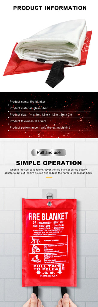 Fire Blanket 1m x 1m Flame Retardant Emergency Safety Fire Shelter Cover Extinguisher