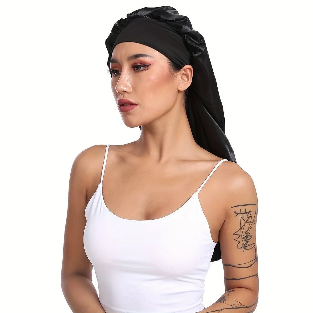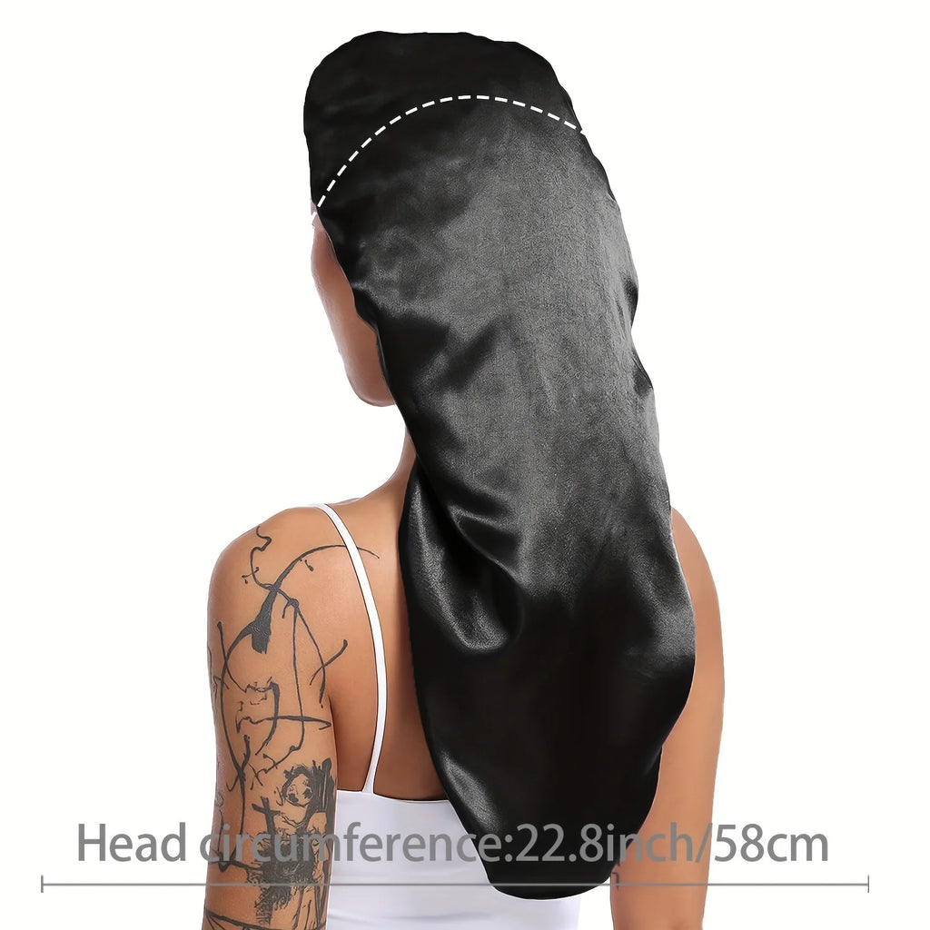 Extra Large Satin Sleep Bonnet for Straight, Curly Hair, Dreadlocks & Braids - Long Silky Night Cap