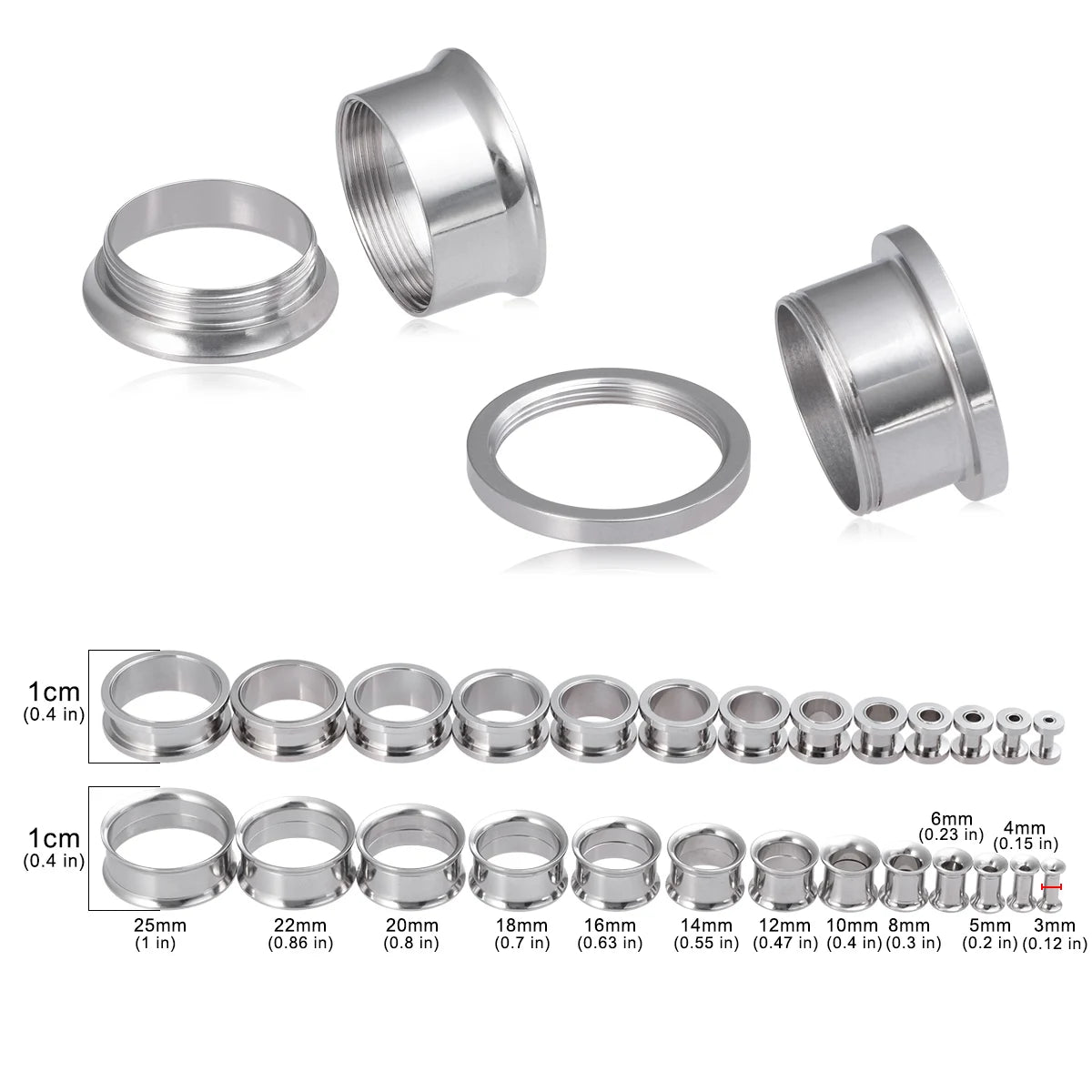 2pcs Surgical Steel Ear Gauges Tunnel Plugs Expander for Unisex Piercing Stretching Earrings 3-25mm