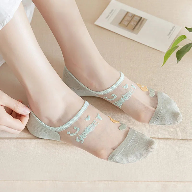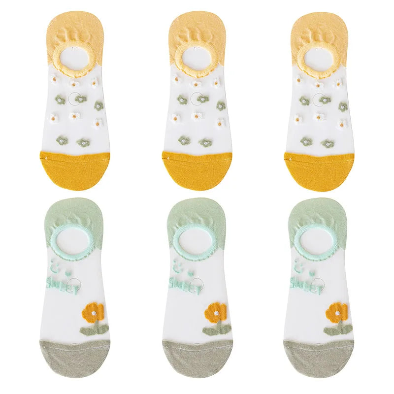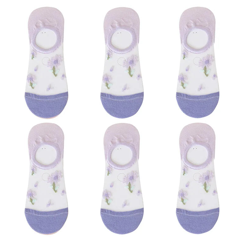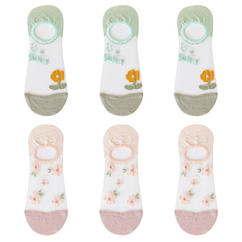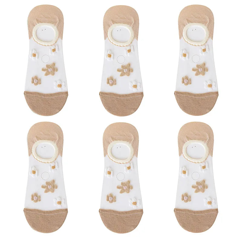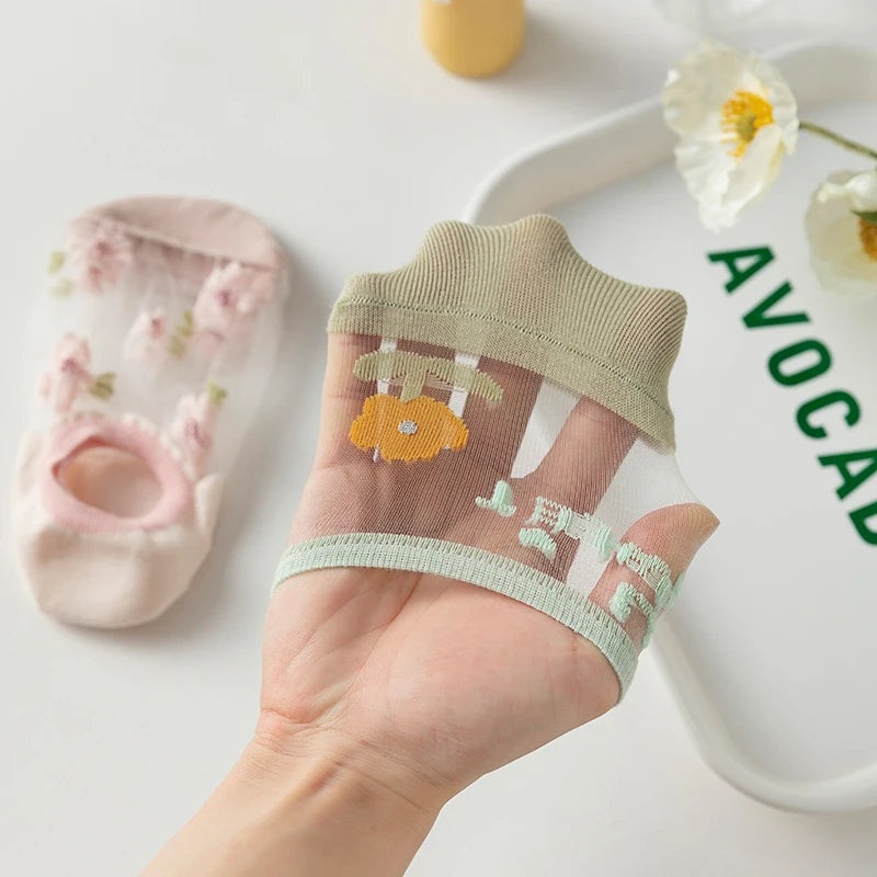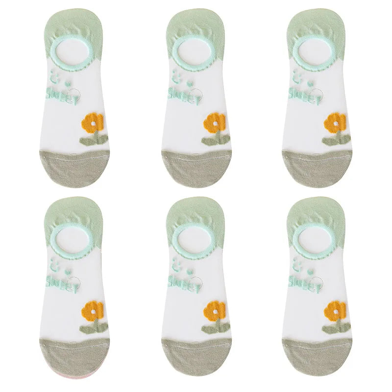 6 Pairs Women's Short Mesh Socks - Summer Breathable Cotton Ankle Socks - Cute Fashion Prints
