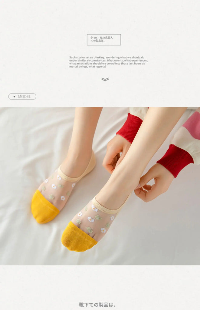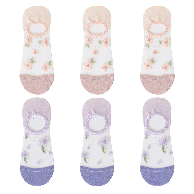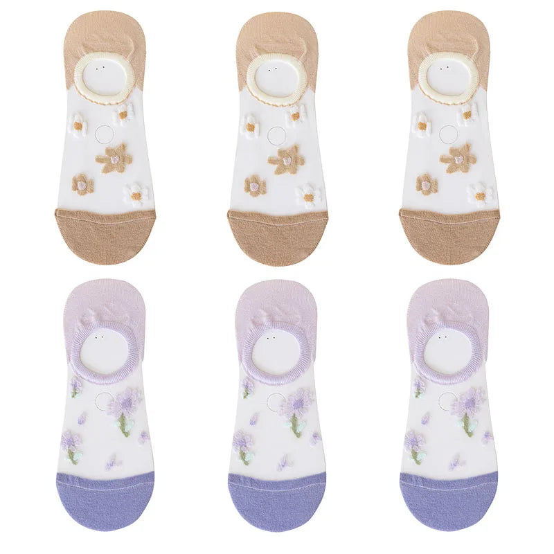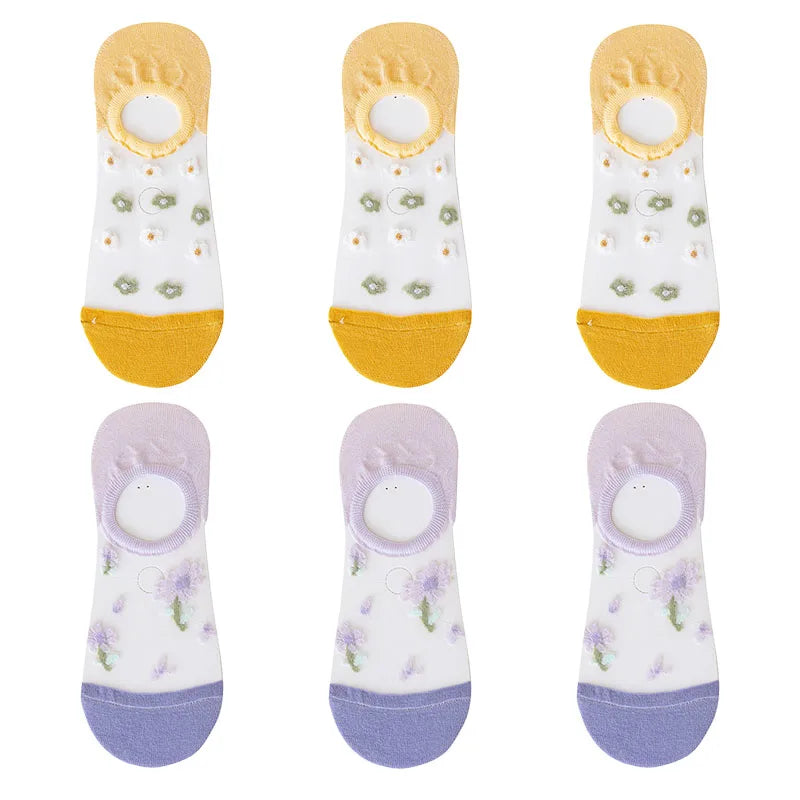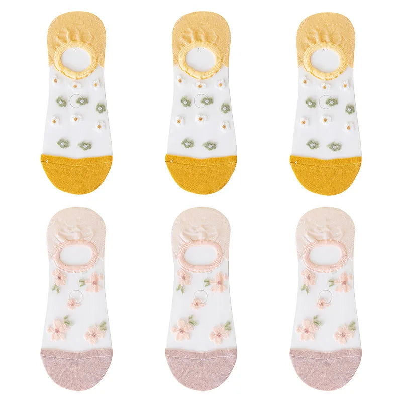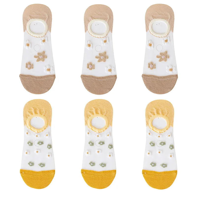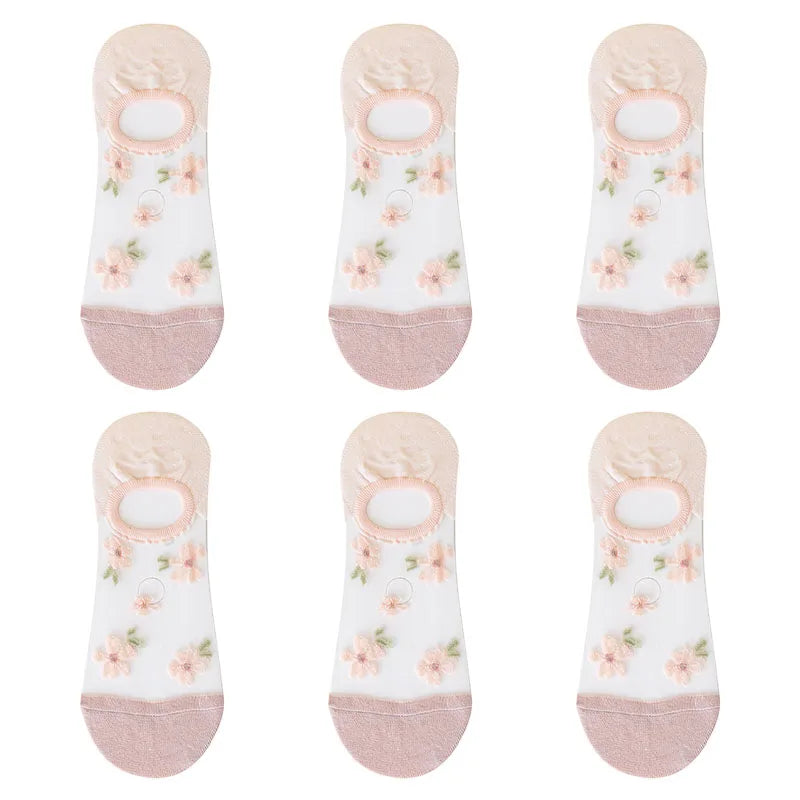 6 Pairs Women's Short Mesh Socks - Summer Breathable Cotton Ankle Socks - Cute Fashion Prints