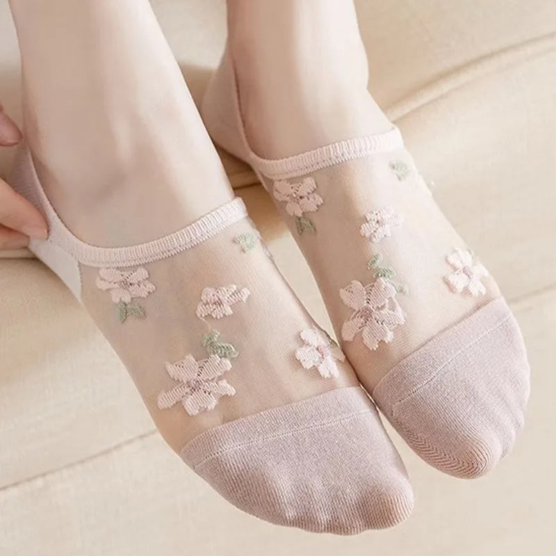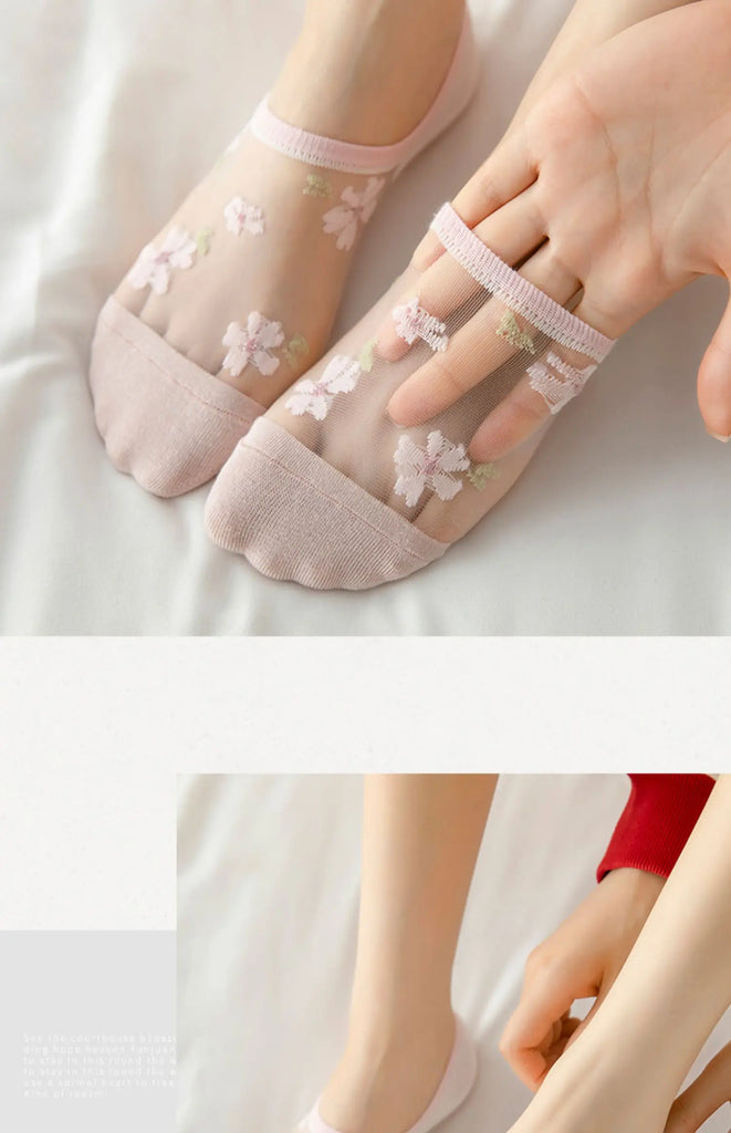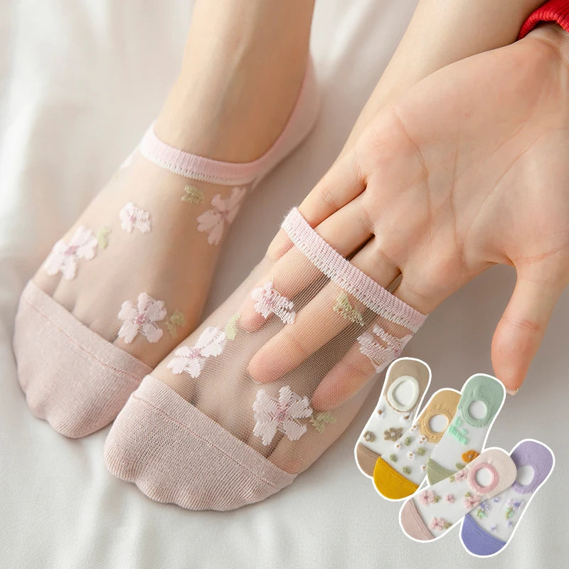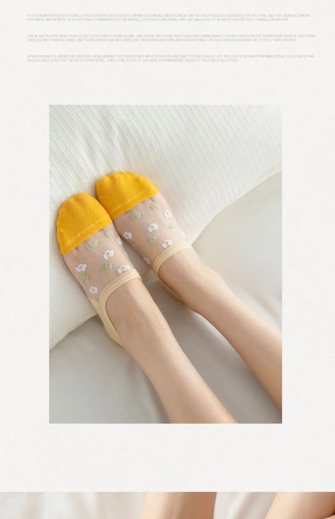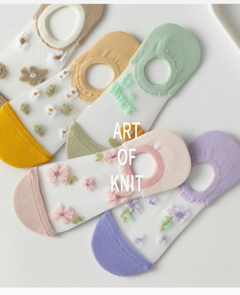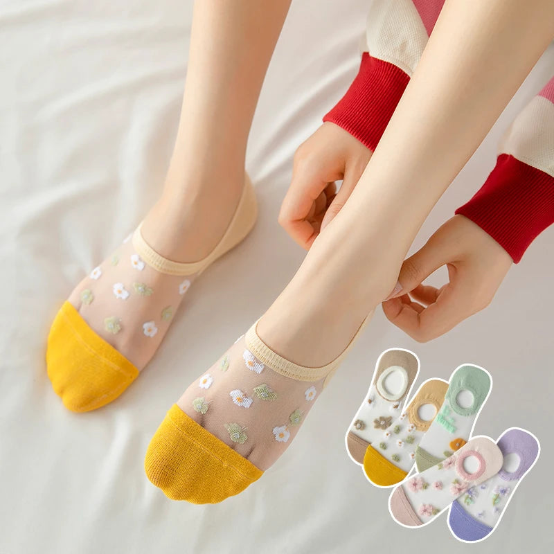 6 Pairs Women's Short Mesh Socks - Summer Breathable Cotton Ankle Socks - Cute Fashion Prints