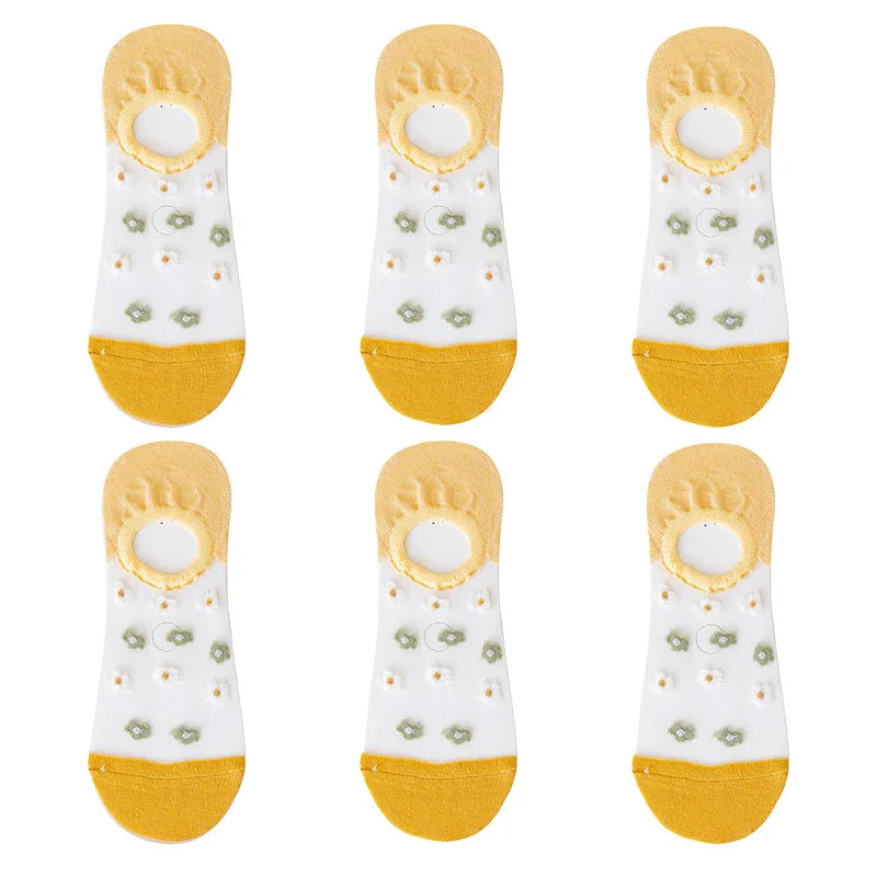 Add a dash of fun to your wardrobe with these delightful ankle socks, perfect for everyday wear. Designed for women, these low-tube socks are made from a comfortable and breathable cotton blend with a touch of silk, ensuring a soft and smooth feel. Ideal for the warmer months of summer, spring, and autumn, they offer excellent breathability, sweat absorption, and anti-friction properties, keeping your feet fresh and comfortable all day long. Each pack includes six pairs, featuring playful prints to brighten up any outfit.