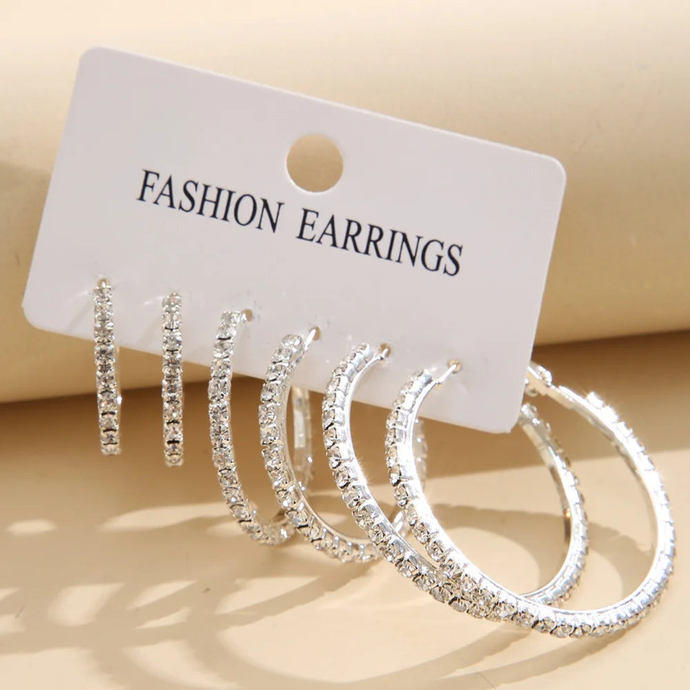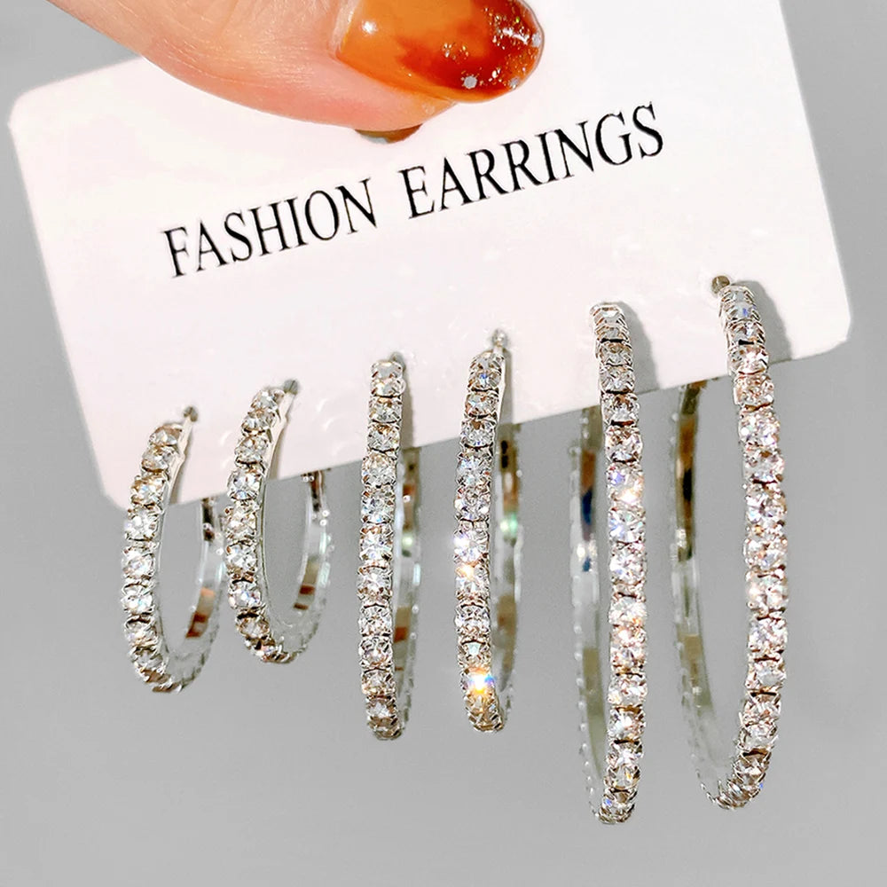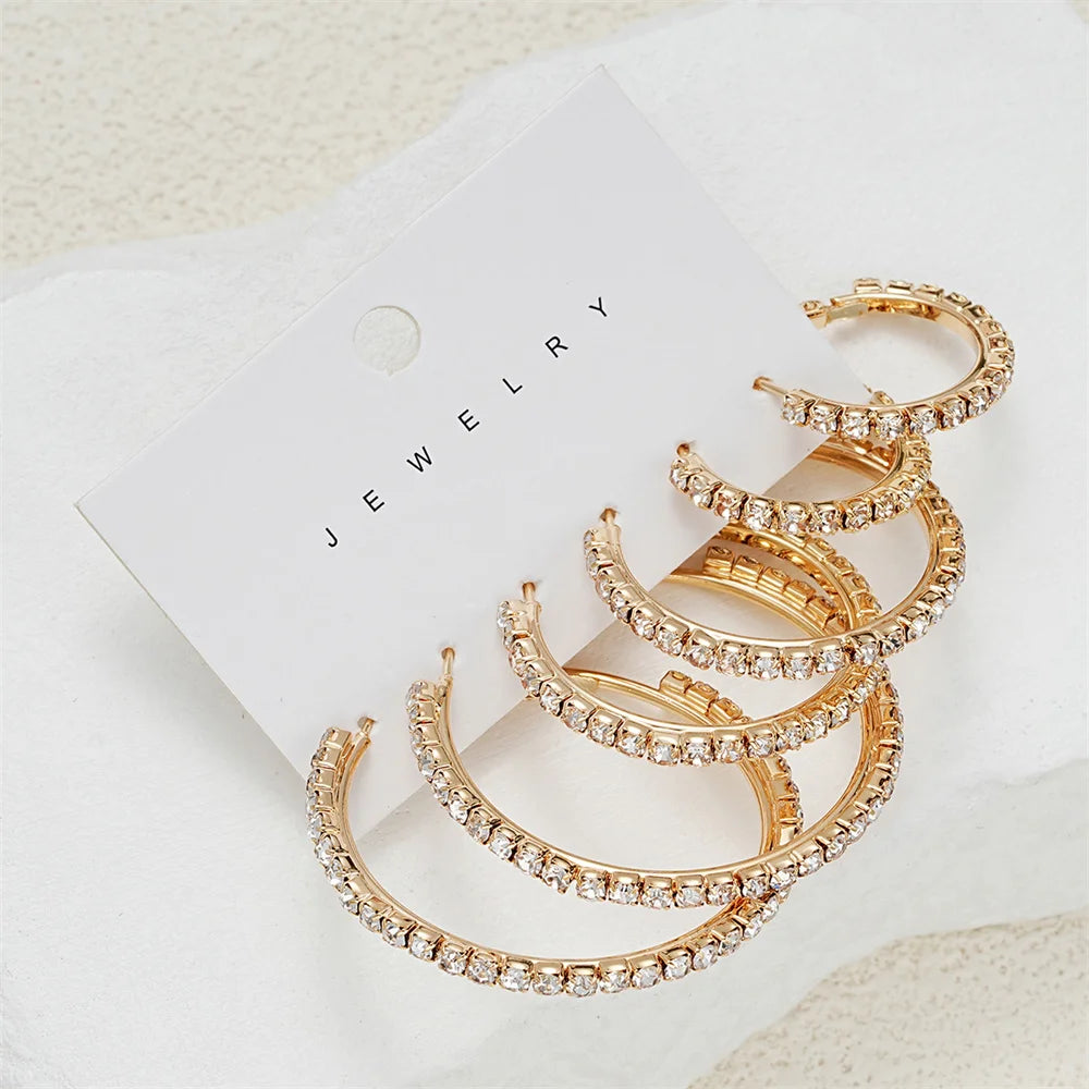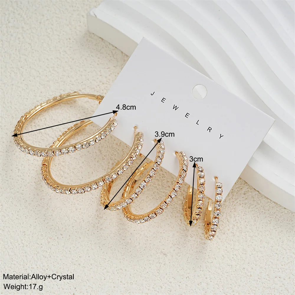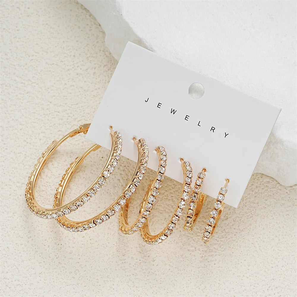 6pcs Gold Plated Crystal Rhinestone Hoop Earrings Set for Women – Shiny Statement Jewelry for Party & Banquet