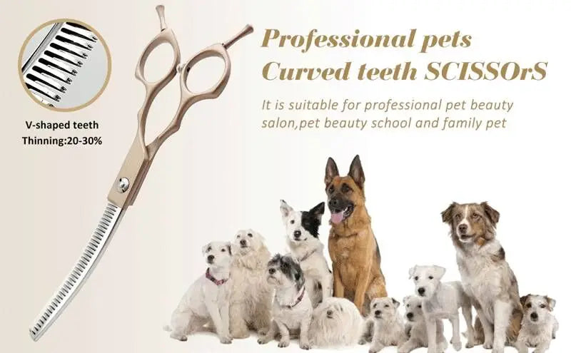 7" Curved Chunkers Shears Stainless Steel Dog/Cat Grooming Scissors - Lightweight Pet Hair Cutting Tool