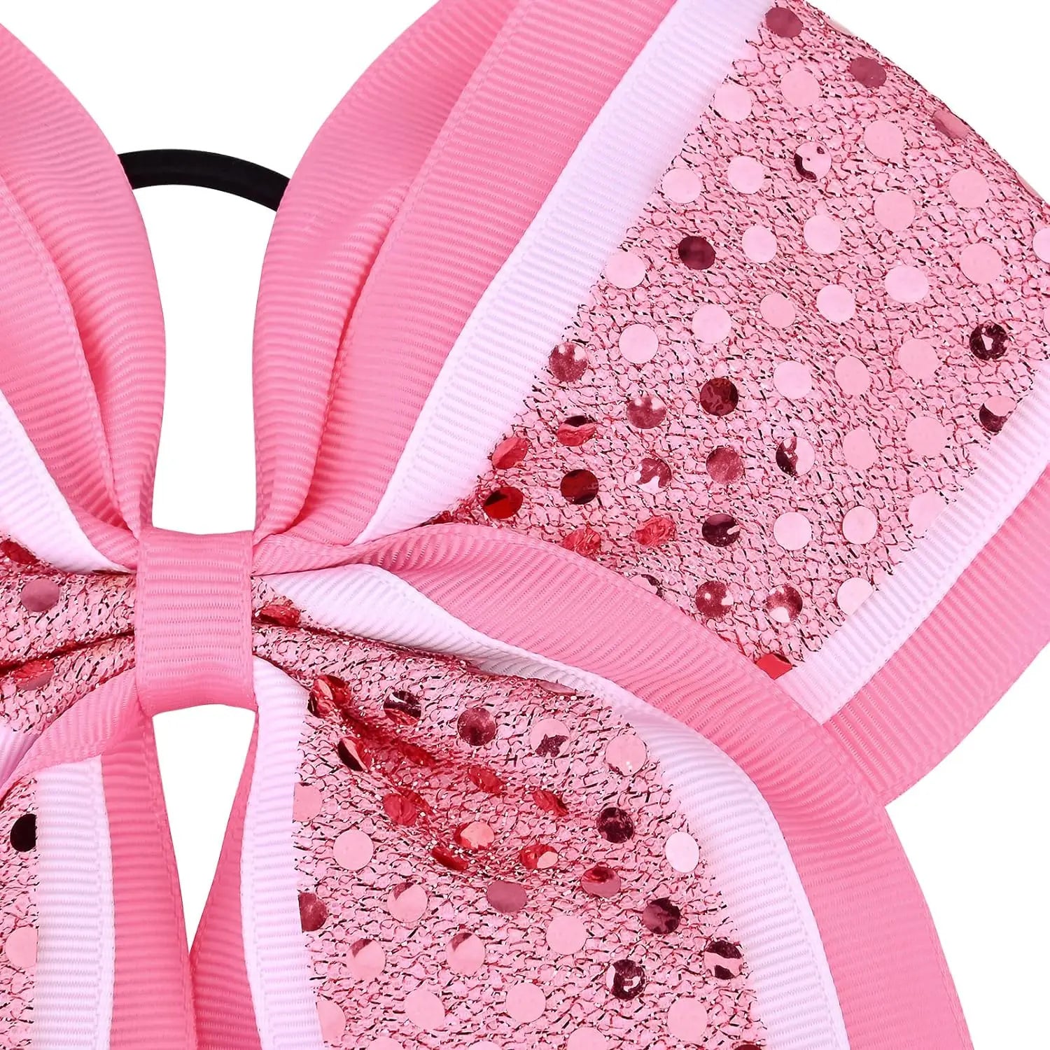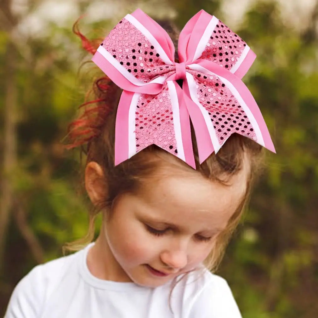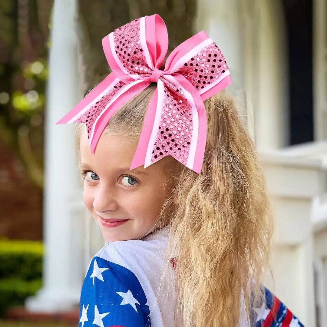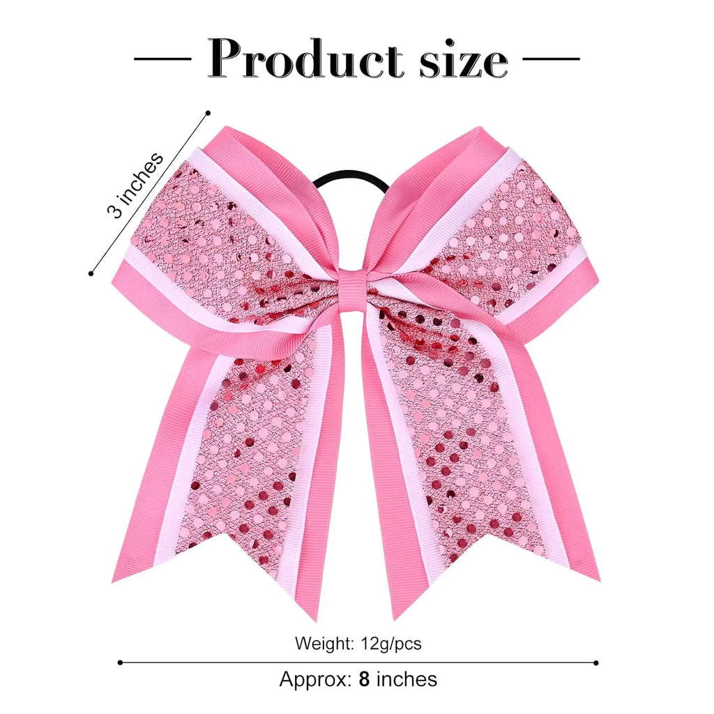 8" Pink Glitter Cheer Bows Hair Accessories for Girls - Cheerleading, Softball, Football Sports