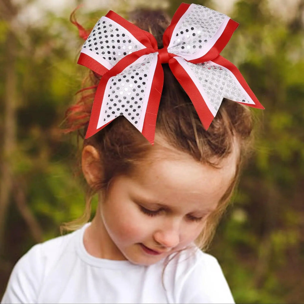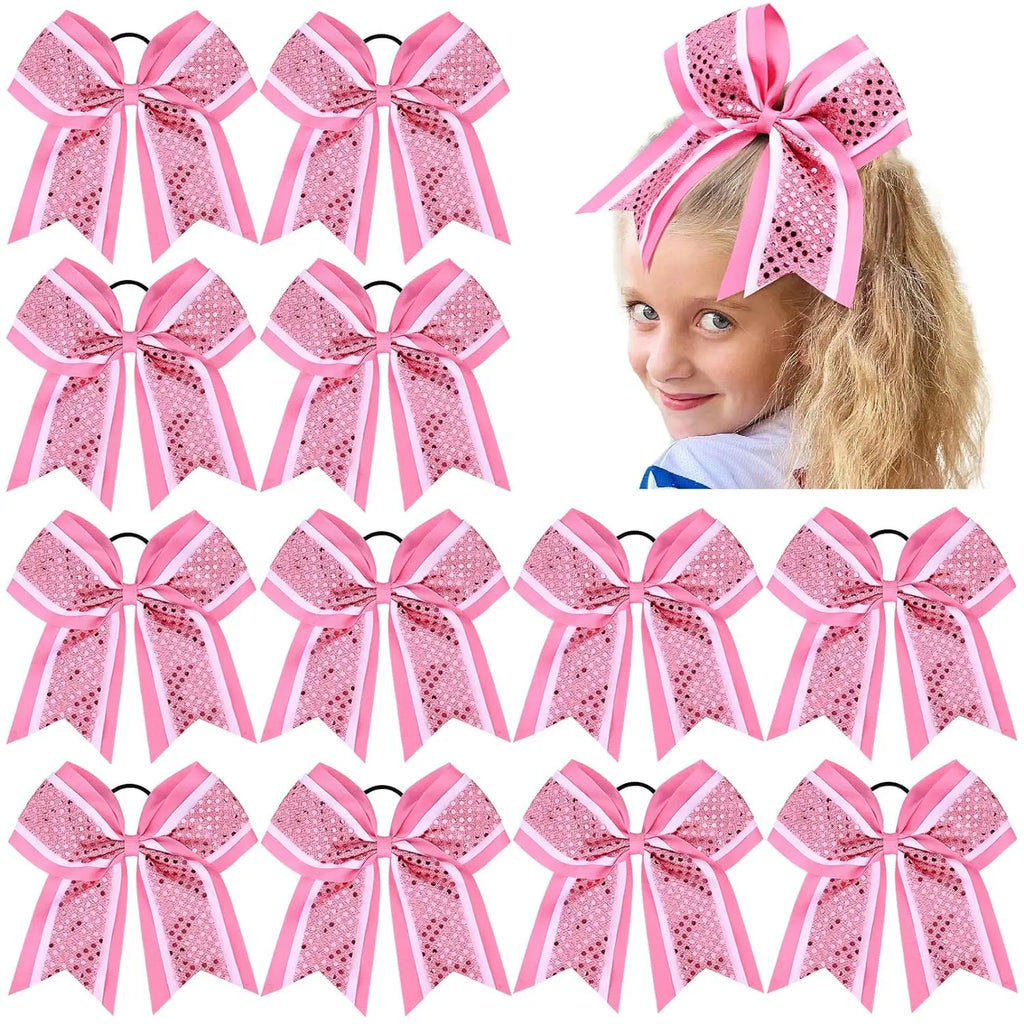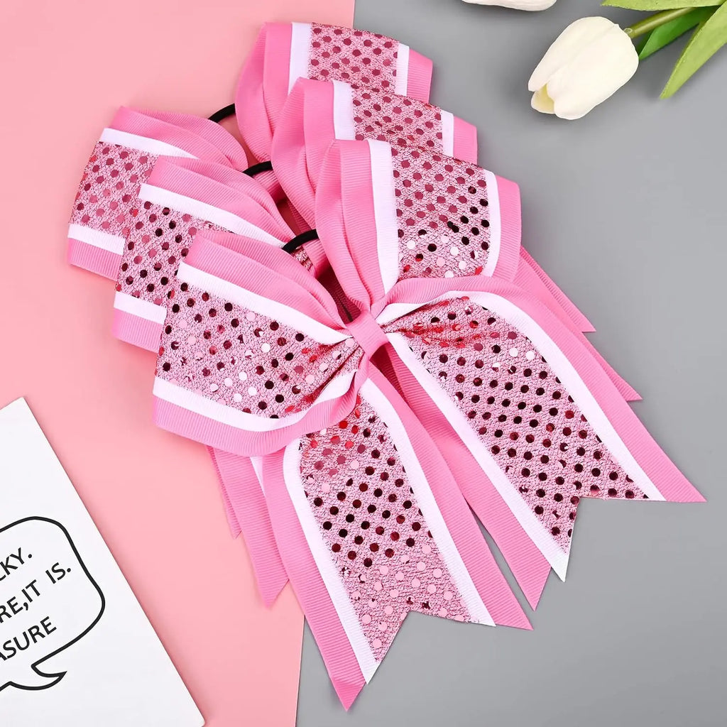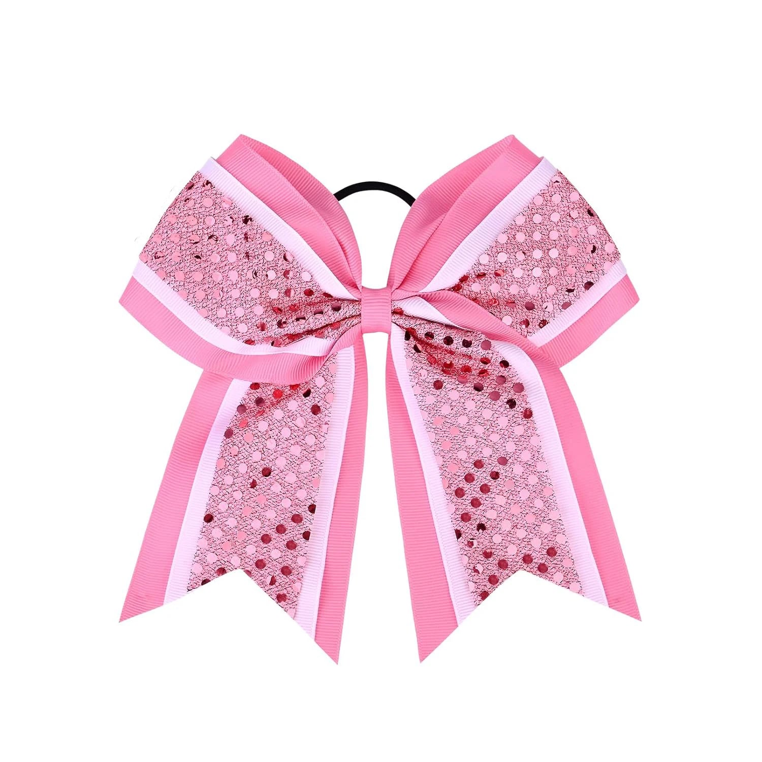 8" Pink Glitter Cheer Bows Hair Accessories for Girls - Cheerleading, Softball, Football Sports