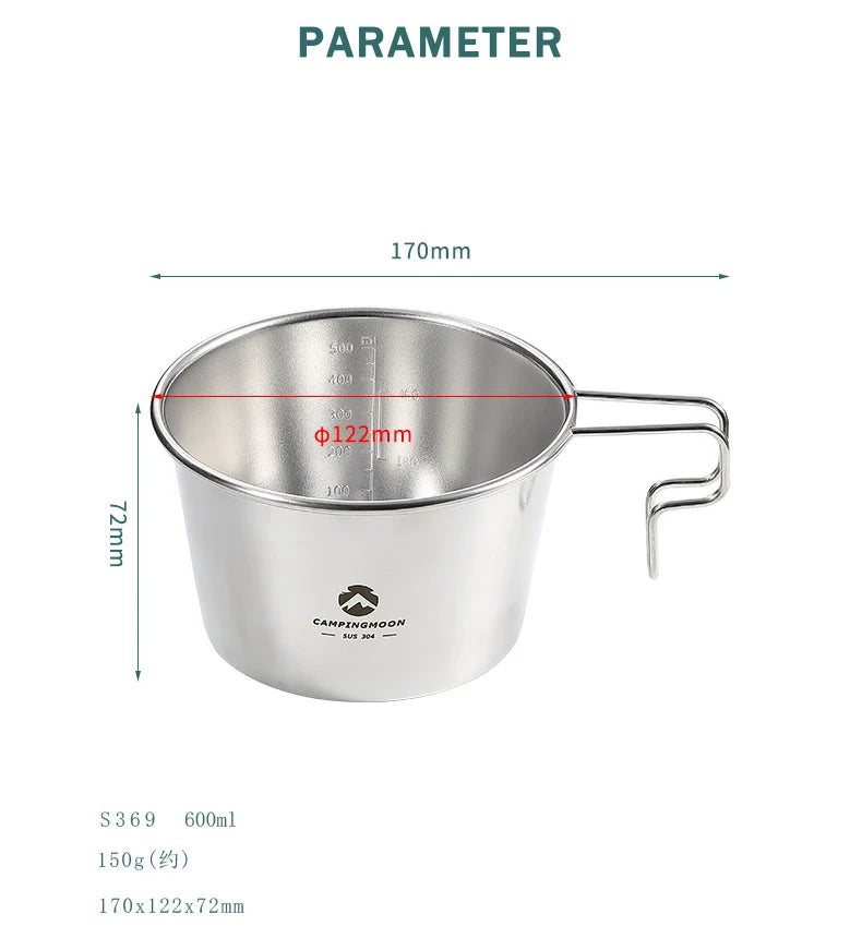 600ml Stainless Steel Camping Bowl with Handle for Outdoor Cooking, Hiking
