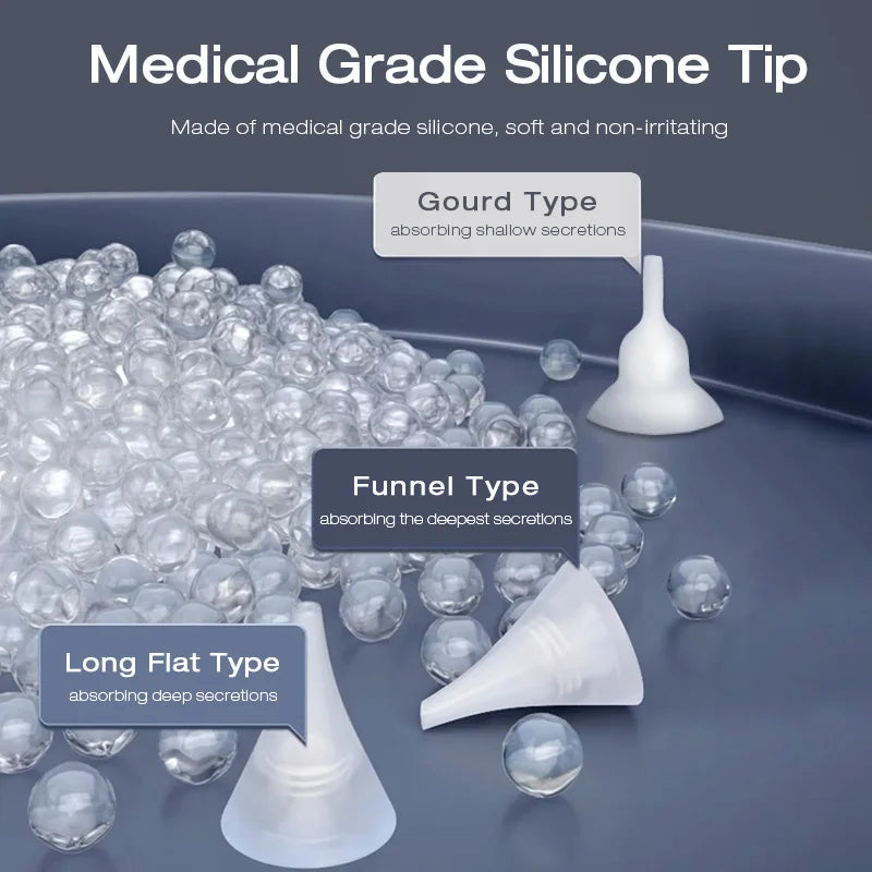 Introducing the Electric Nasal Aspirator, a must-have for parents looking to provide relief for their children suffering from nasal congestion. Designed with safety and convenience in mind, this nasal aspirator features a soft and flexible material, ensuring gentle contact with your child's sensitive nose. It includes three reusable food-grade silicone tips in different sizes, catering to various ages and needs.