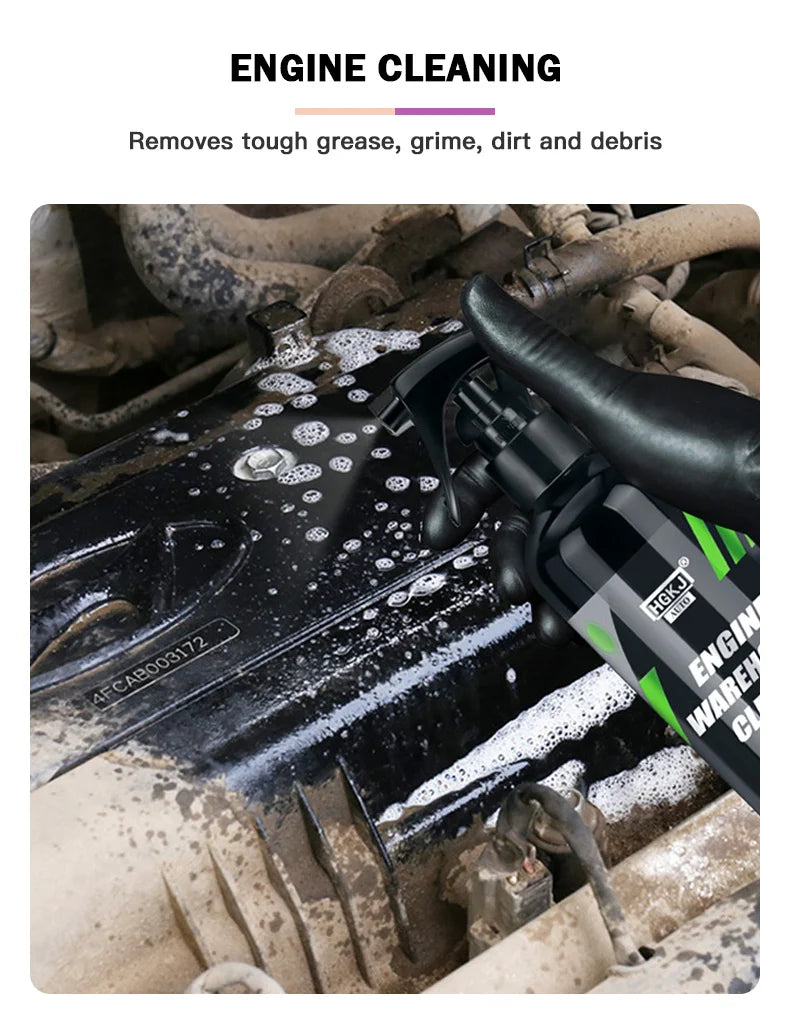 Engine Bay Cleaner & Shine Protector - Deep Degreaser for Heavy Oil & Dust Removal - Car Compartment Detailer Tool