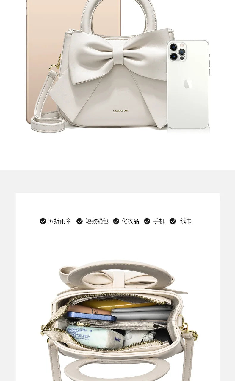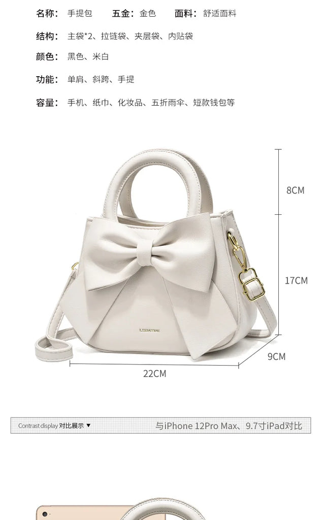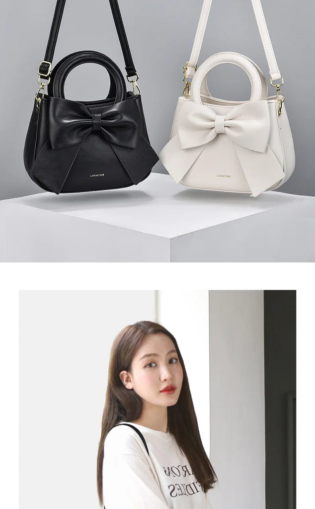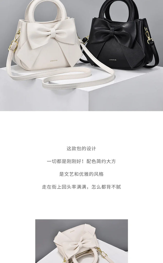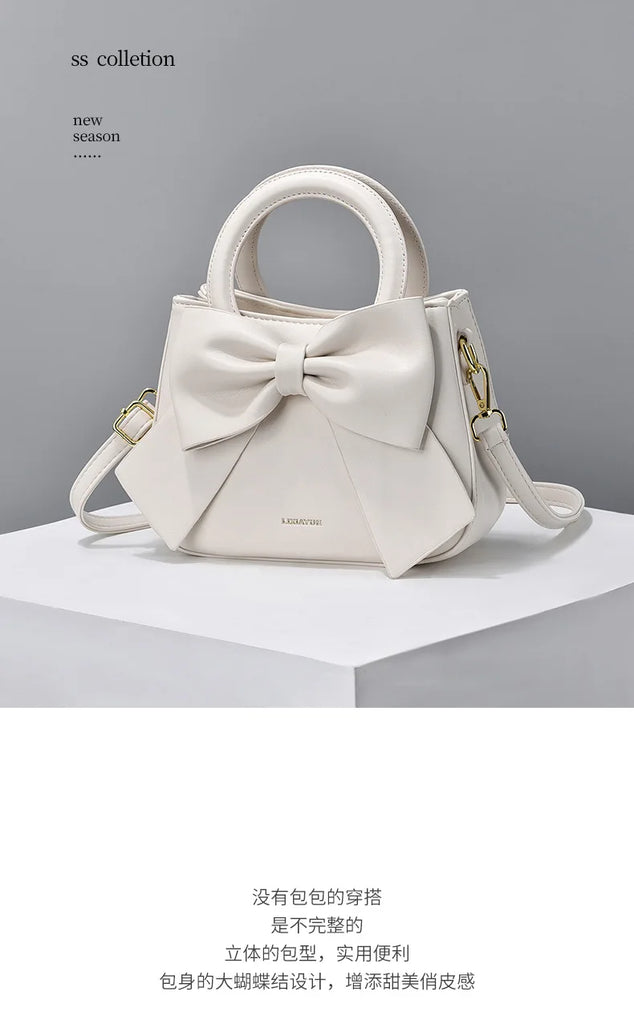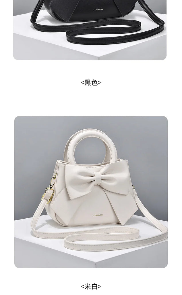 Fashion Casual Bow Handbags - Black/White/Blue/Khaki PU Shoulder & Underarm Bags for Women