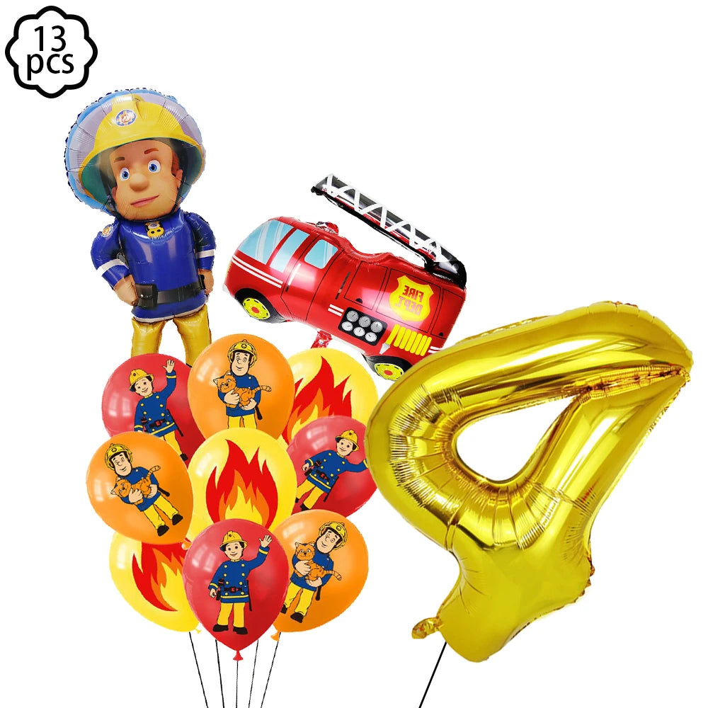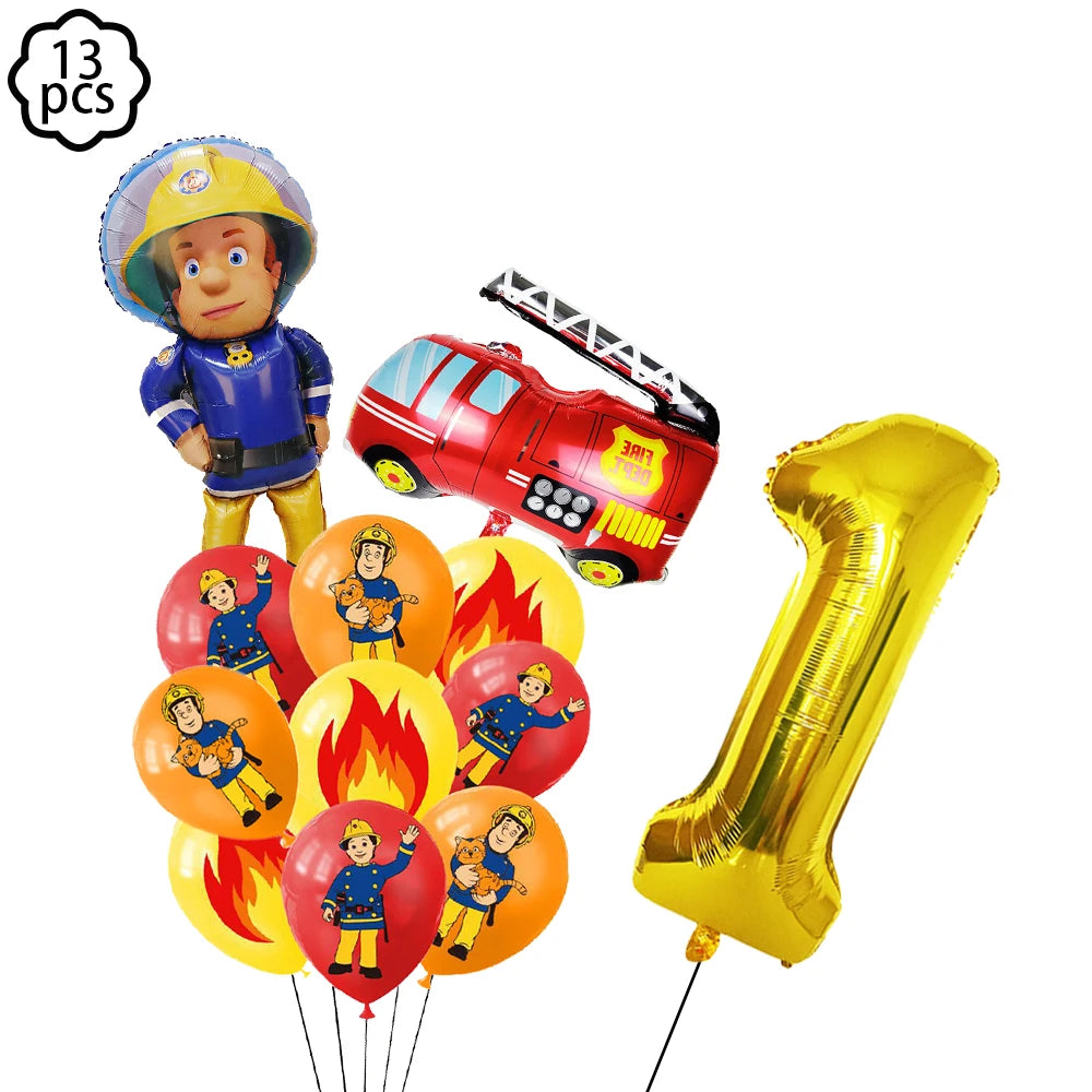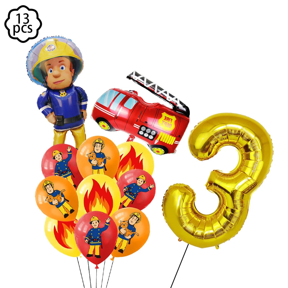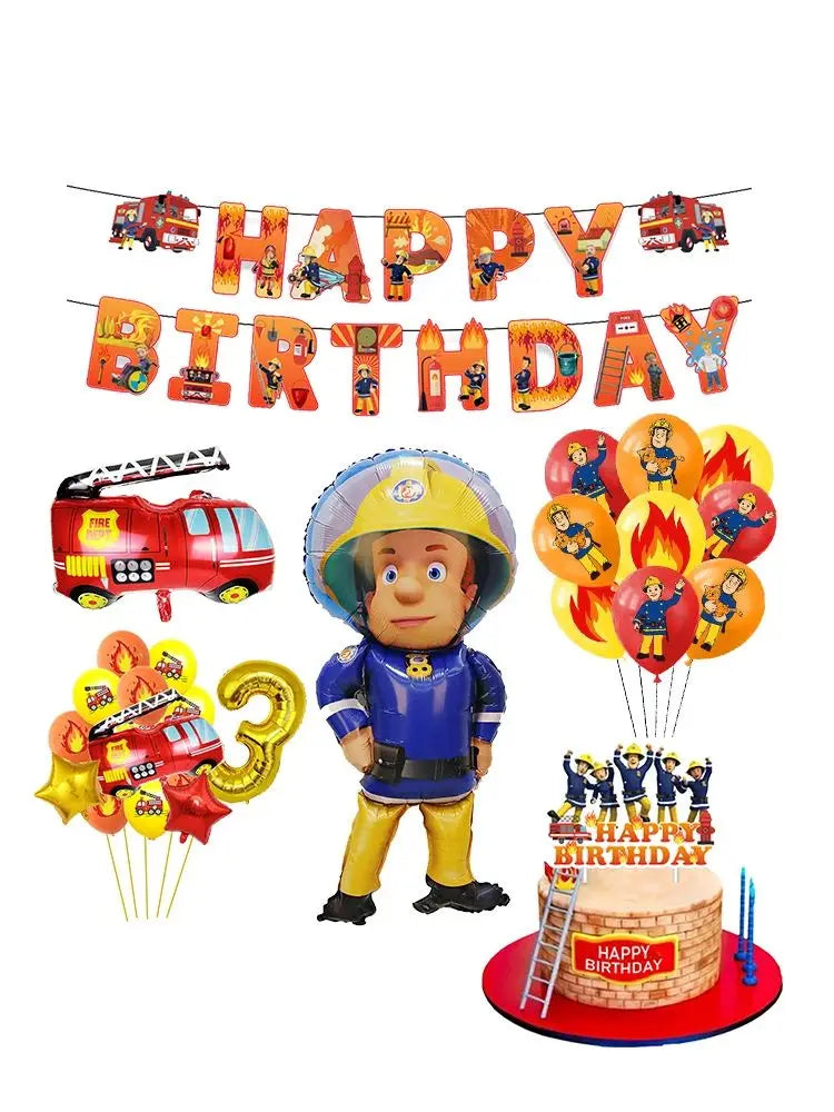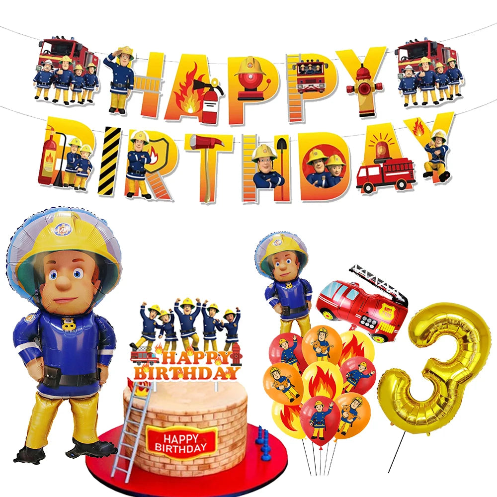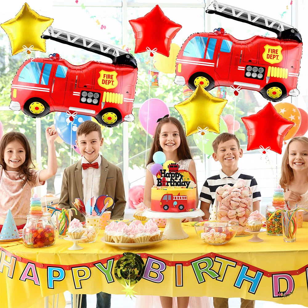 Firefighter Party Set: Firetruck Balloons, Cake Toppers & Banner