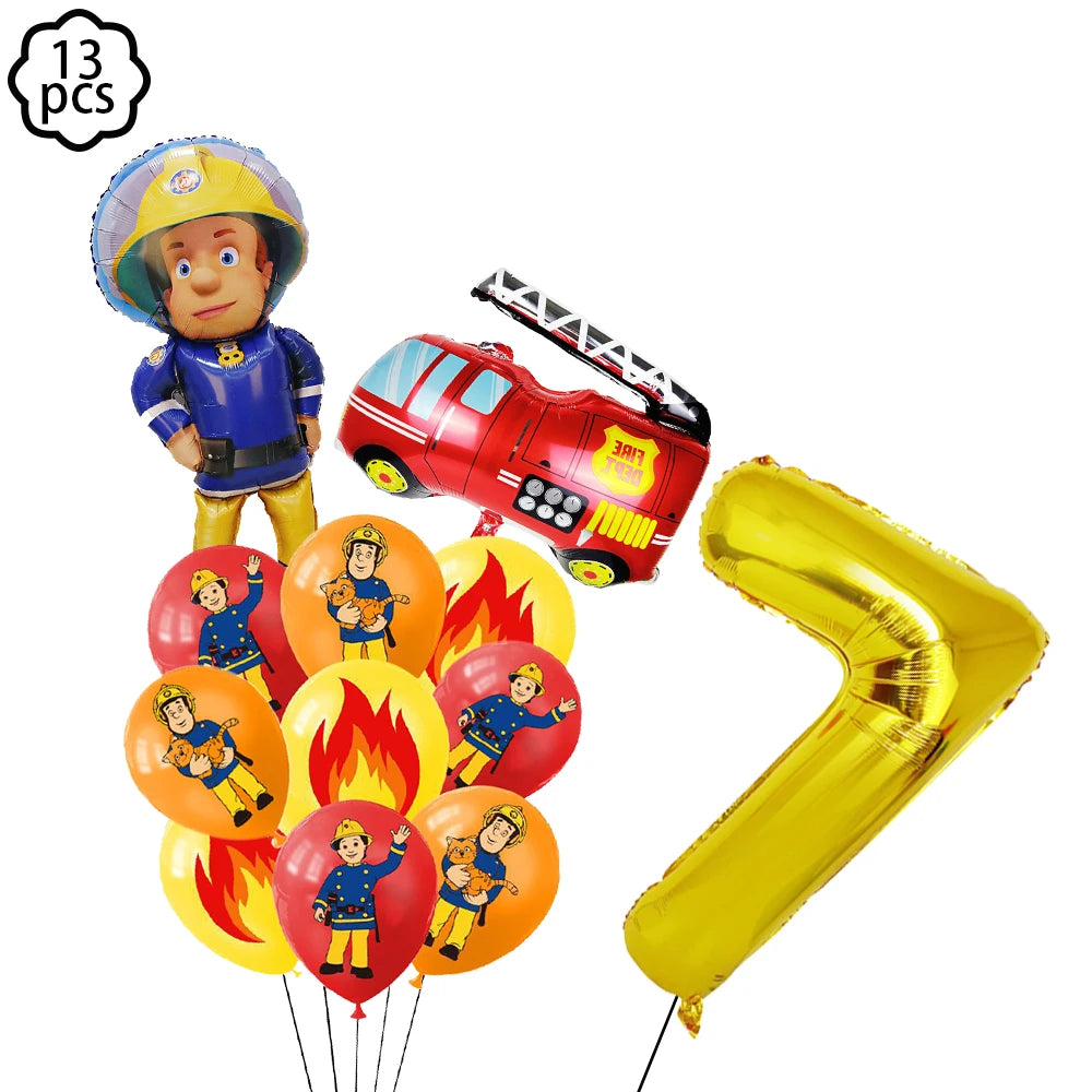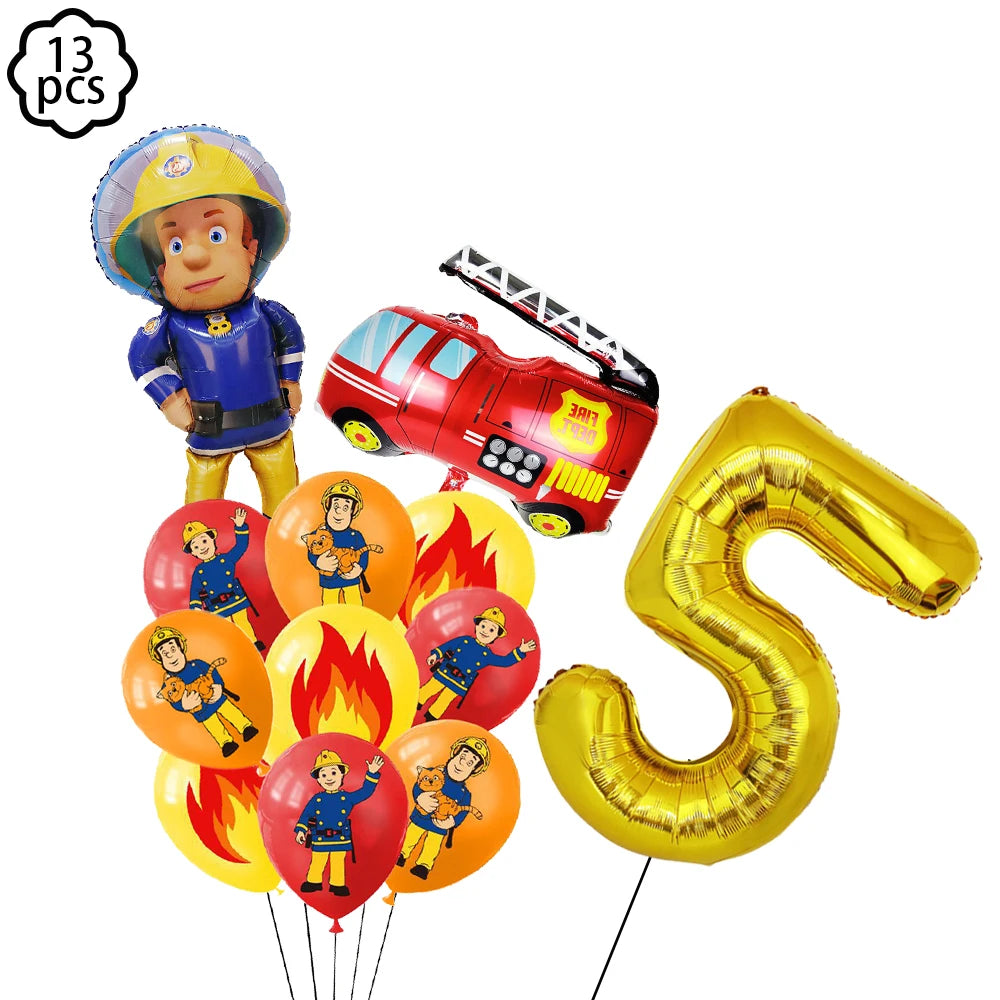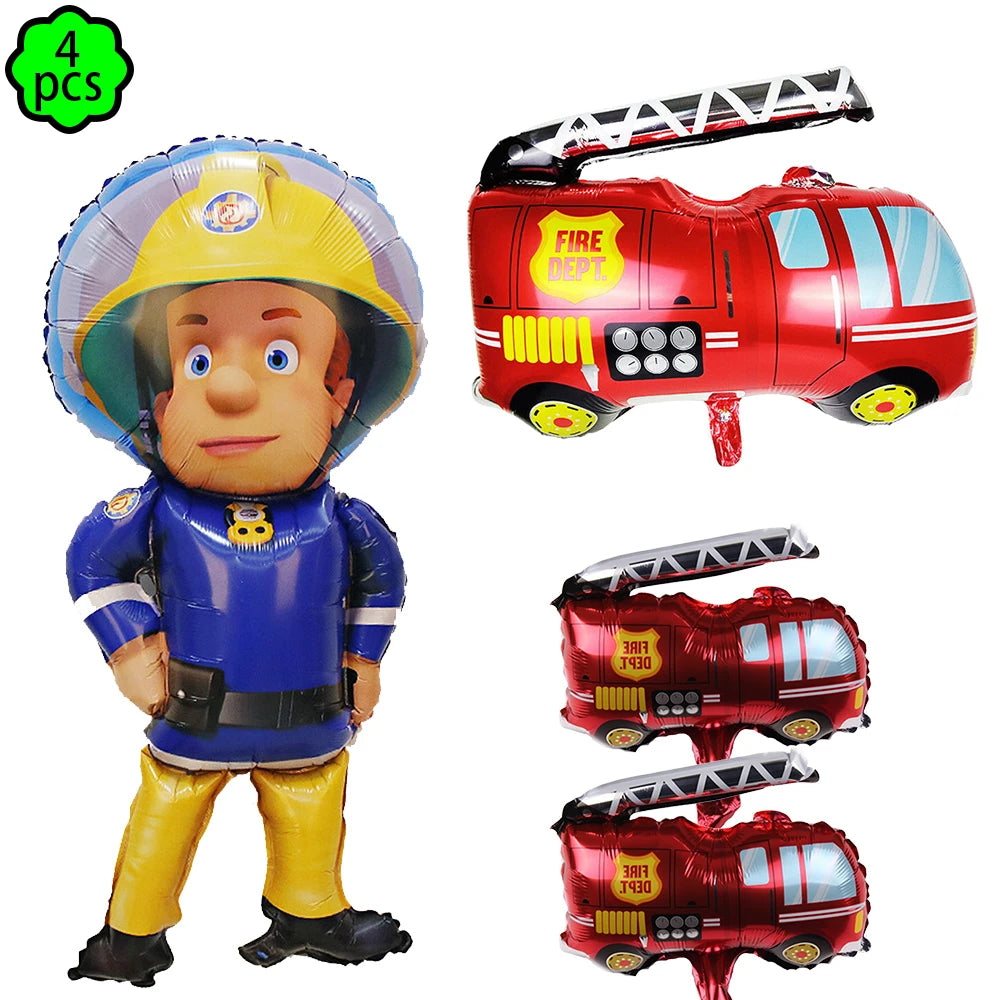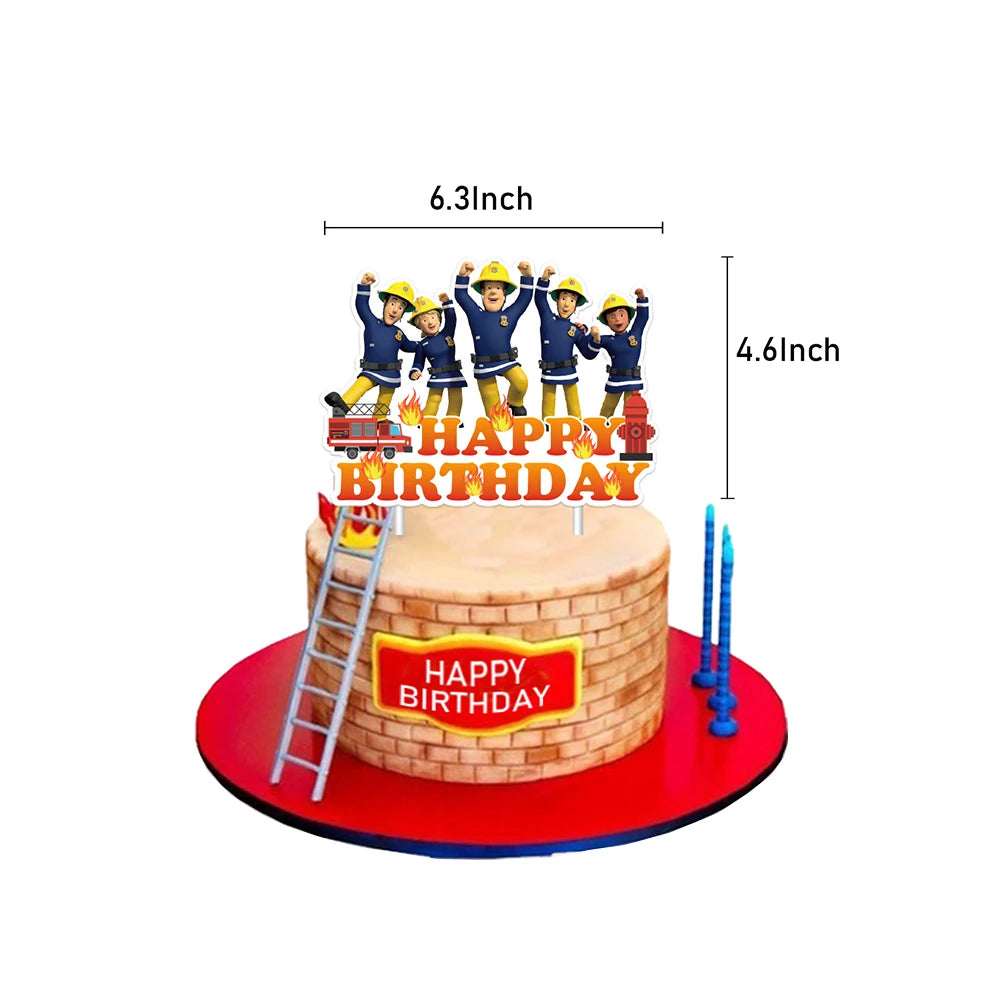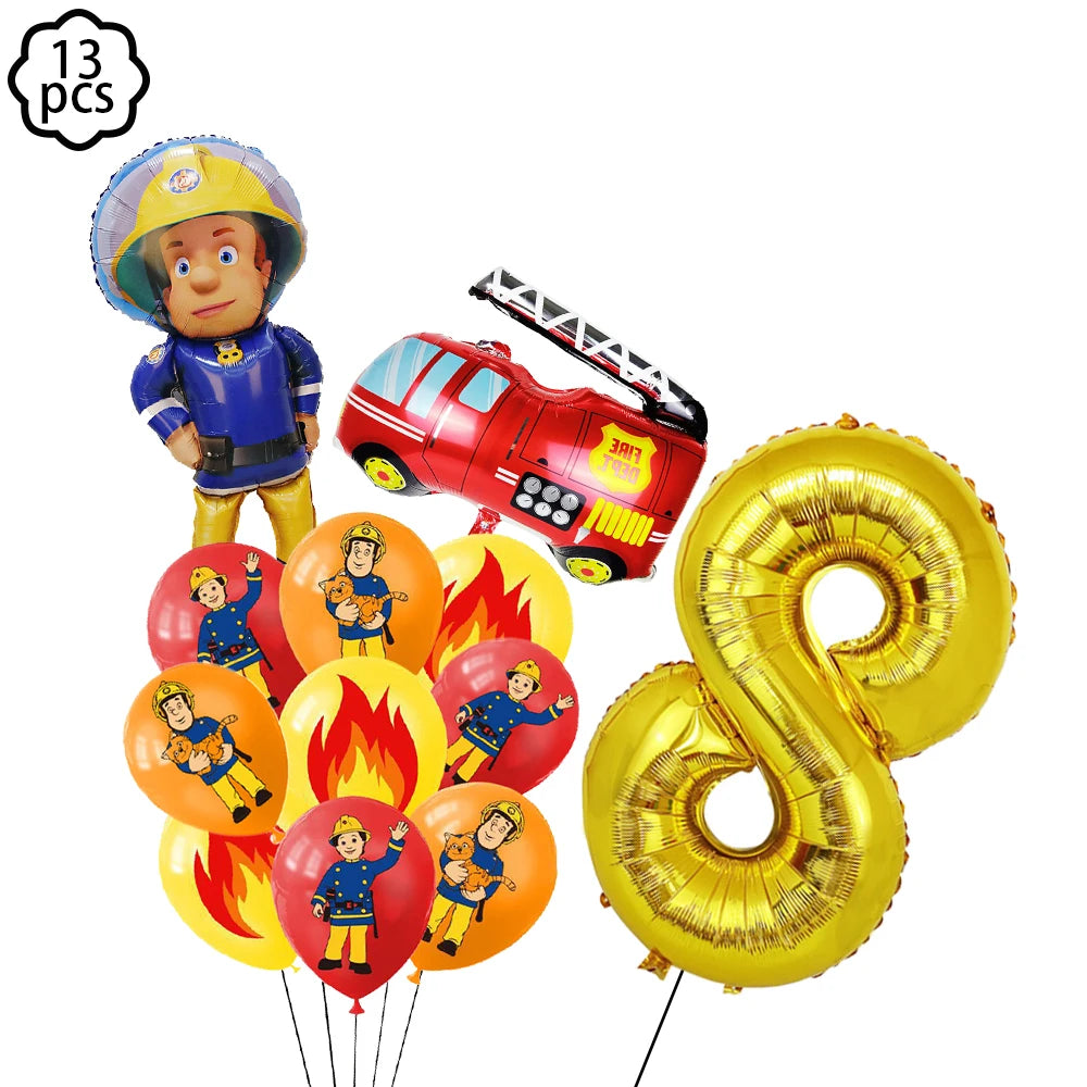 Firefighter Party Set: Firetruck Balloons, Cake Toppers & Banner