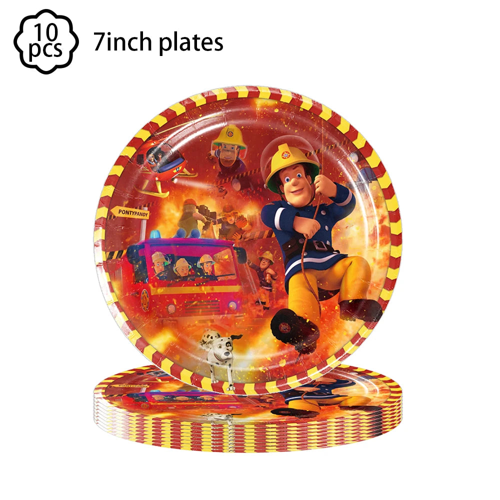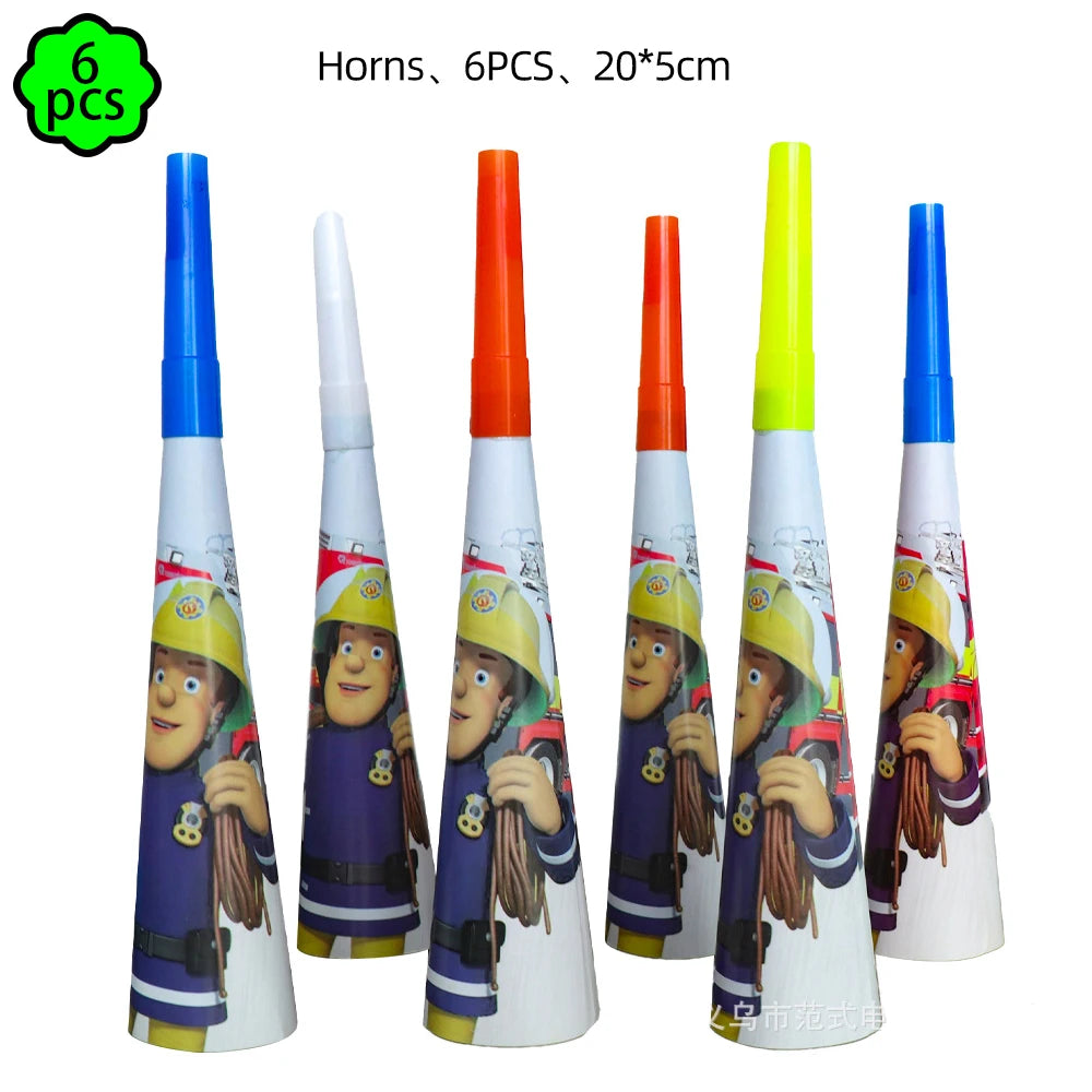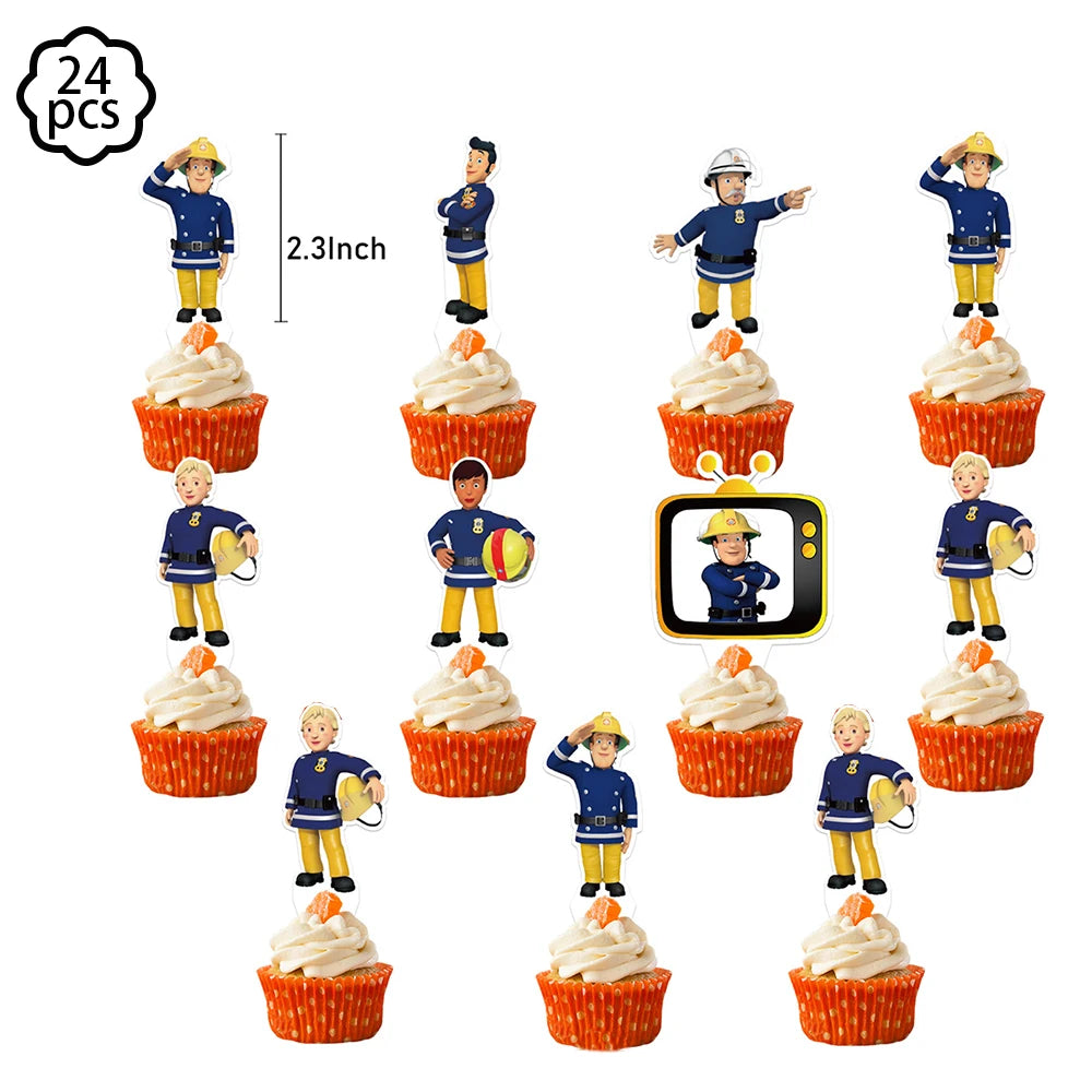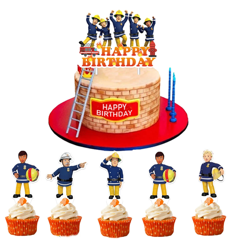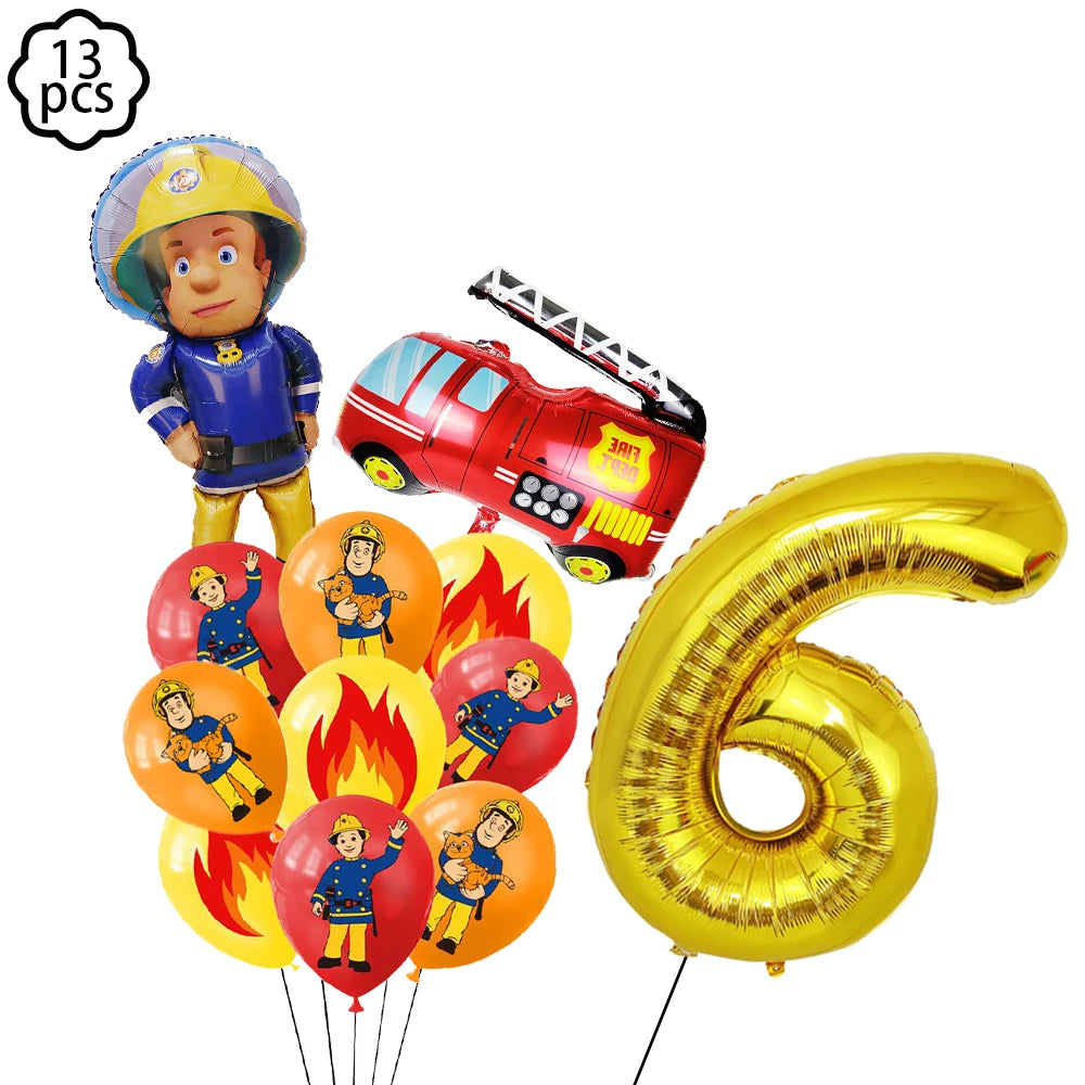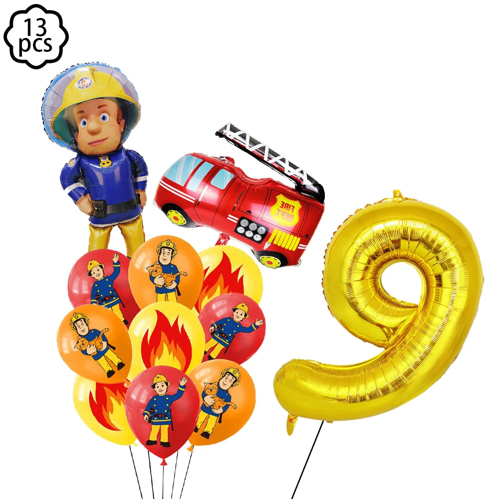 Firefighter Party Set: Firetruck Balloons, Cake Toppers & Banner