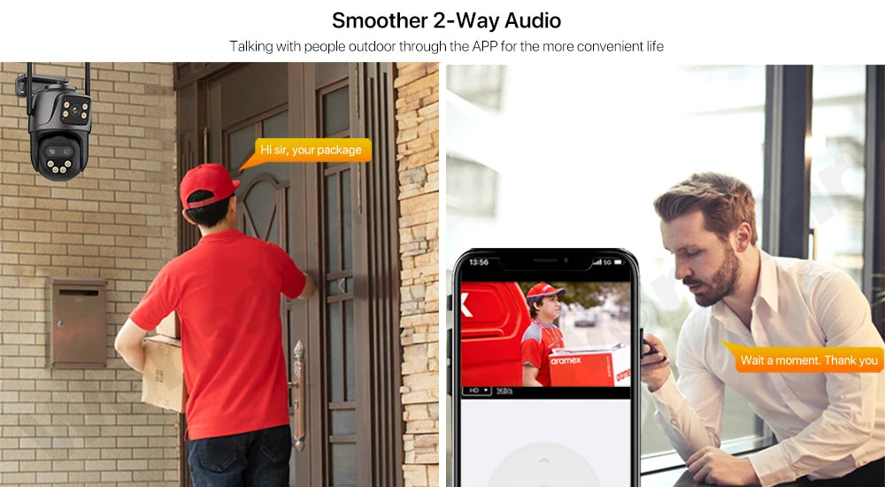 - Triple Lens System: Features a top lens at 3.6mm and a bottom lens at 6mm, providing wide-angle and long-distance viewing to capture every detail from near and far.