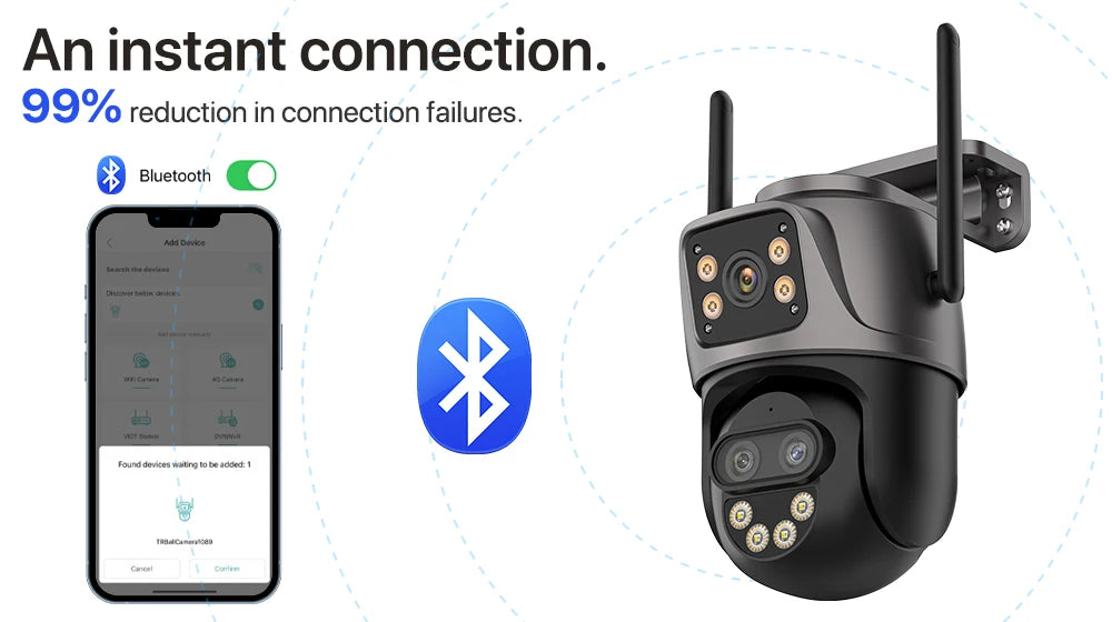 Experience unparalleled surveillance with our advanced PTZ WiFi Camera, featuring a revolutionary 3-lens, 2-screen design for comprehensive monitoring. Perfect for both indoor and outdoor use, this camera ensures detailed coverage with its powerful viewing angles and robust AI functions.