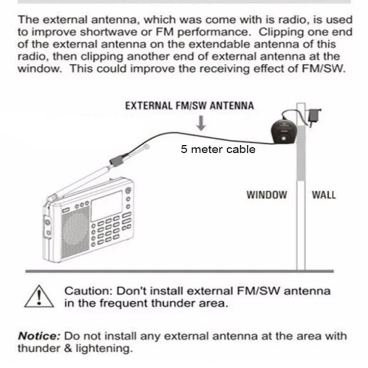 Easy to install, simply fix the antenna outdoors or near a window, connect it to your radio, and enjoy enhanced audio clarity. Please use with caution during thunderstorms.