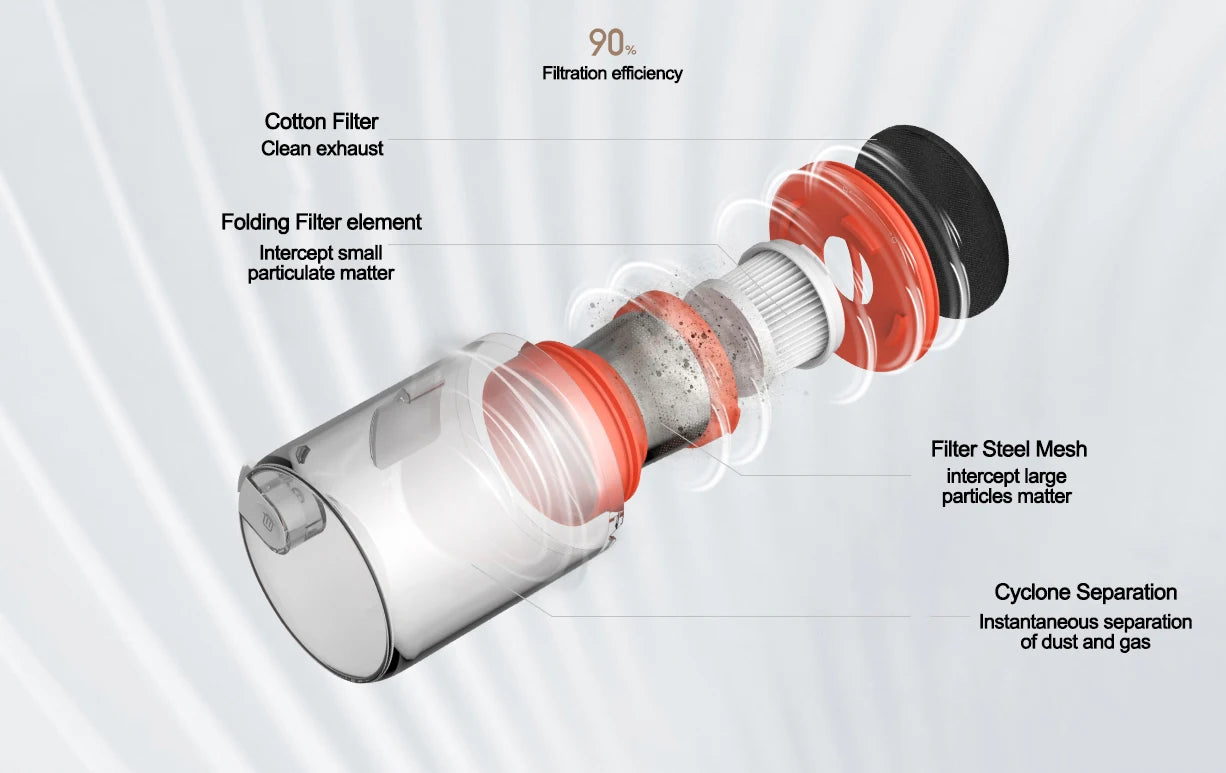 For added convenience, the lightweight design, weighing only 1.63kg, makes it effortless to handle. The upgraded transparent dust cup with one-click disassembly offers easy visibility and disposal of collected dust and mites.