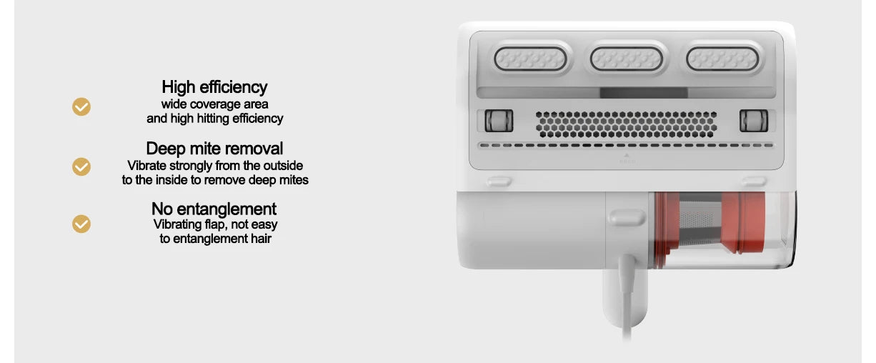 Equipped with a powerful motor, the device delivers up to 12,000PA suction power, efficiently removing mites, hair, debris, and dust. The added functionality of 50°C hot air drying helps maintain mattress dryness and inhibits mite reproduction.
