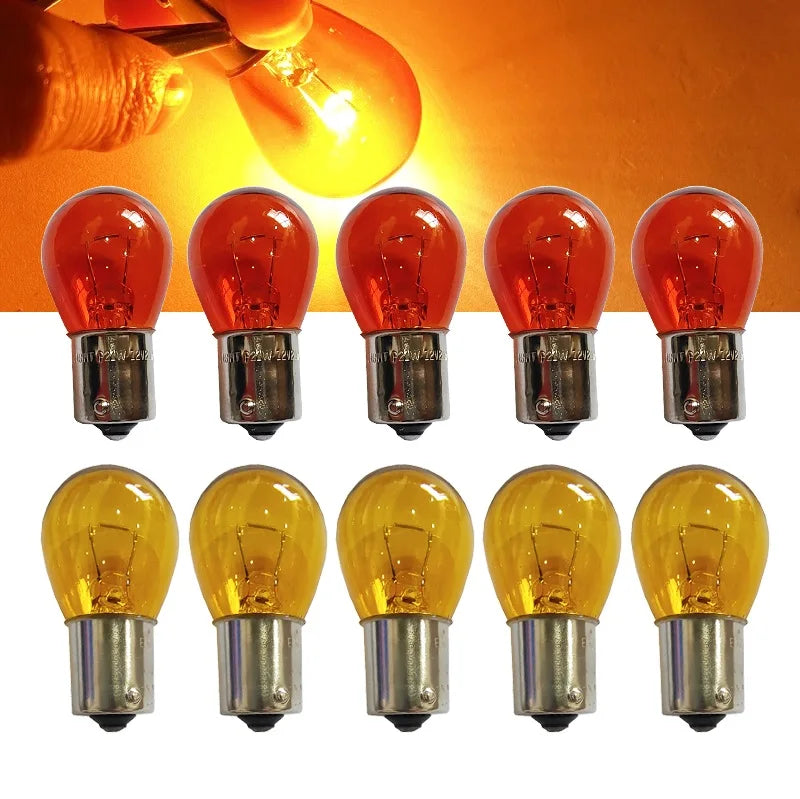 Amber Car Light Bulb 21W DC12V, Low Consumption PY21W P21W Auto Brake Stop Indicator Lamp Bay15d Ba15s 1157 1156