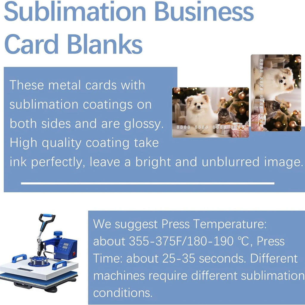 Aluminum Sublimation Business Card Blanks - Double-Sided, Heat Press Transfer, 50/100pcs, White, 3.4x2.1in Desk Accessories