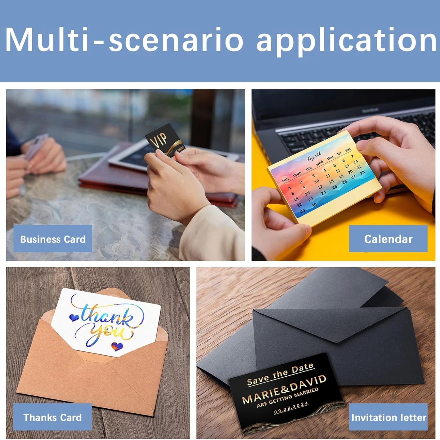 Introducing our premium aluminum product, designed for durability and versatility. Crafted from high-quality materials, it promises long-lasting use and resilience. Its dual-sided design allows for printing on both sides, offering endless customization possibilities. Perfect for heat press transfers, the surface ensures vibrant and professional results. The sleek white finish enhances visibility, making it ideal for creating eye-catching business cards and other desk accessories.