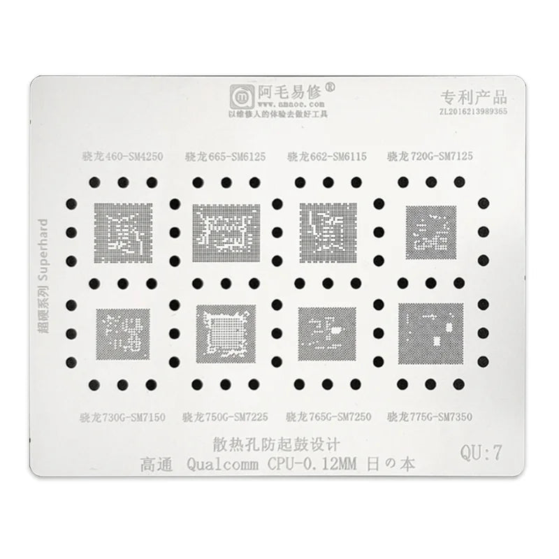 Amaoe BGA Reballing Stencil for CPU SM4250 SM7150 SM6125 SM7225 SM7250 SM7350 SM7125 SM6115