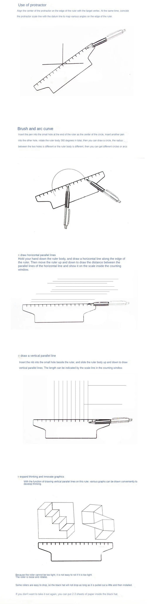 Angles Line Ruler 15cm & 30cm Multi-Function Metric Drawing Tool Clear Roll & Parallel Rolling Ruler