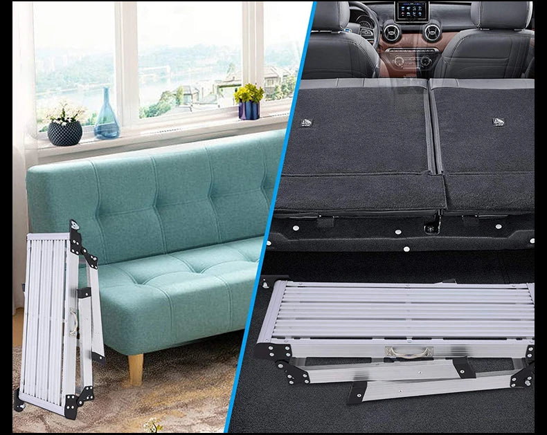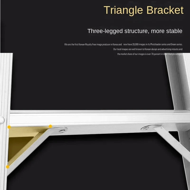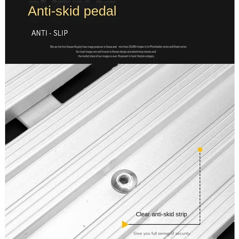 Upgrade your home and work tasks with our Aluminum Alloy Folding Ladder. Expertly designed for durability and convenience, this ladder supports up to 150kg and features a wide 30.5cm step for enhanced safety. Its triangular support structure offers stability, while the anti-slip foot pads ensure secure footing. Designed for easy storage, it folds in just one second and weighs only 3.75kg, ensuring effortless portability.