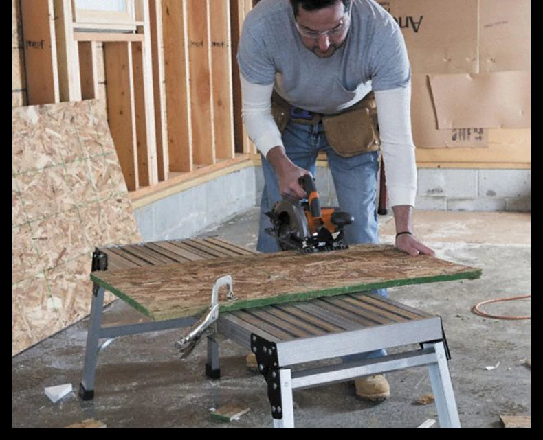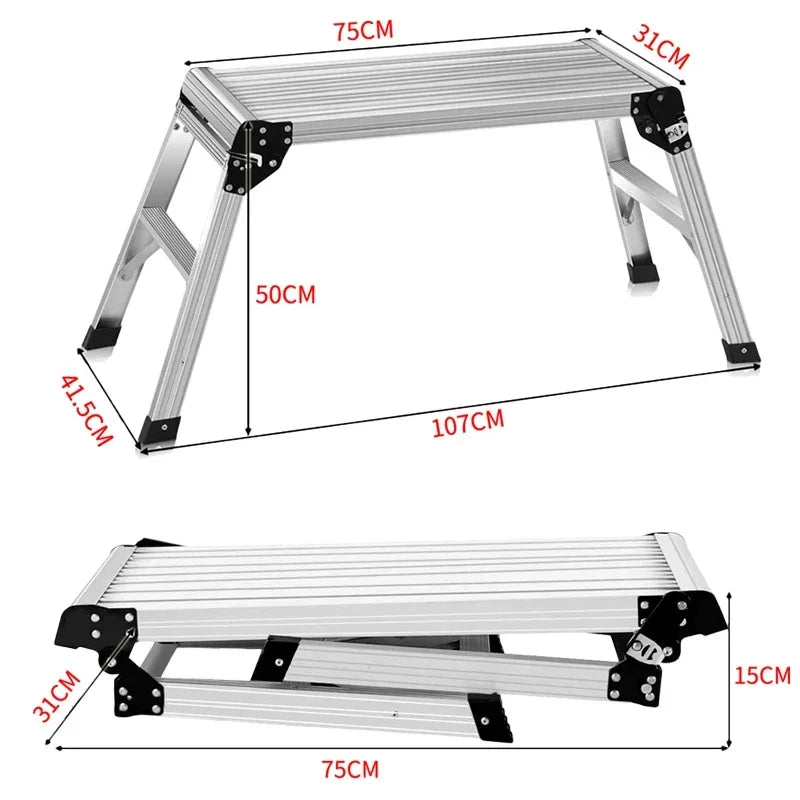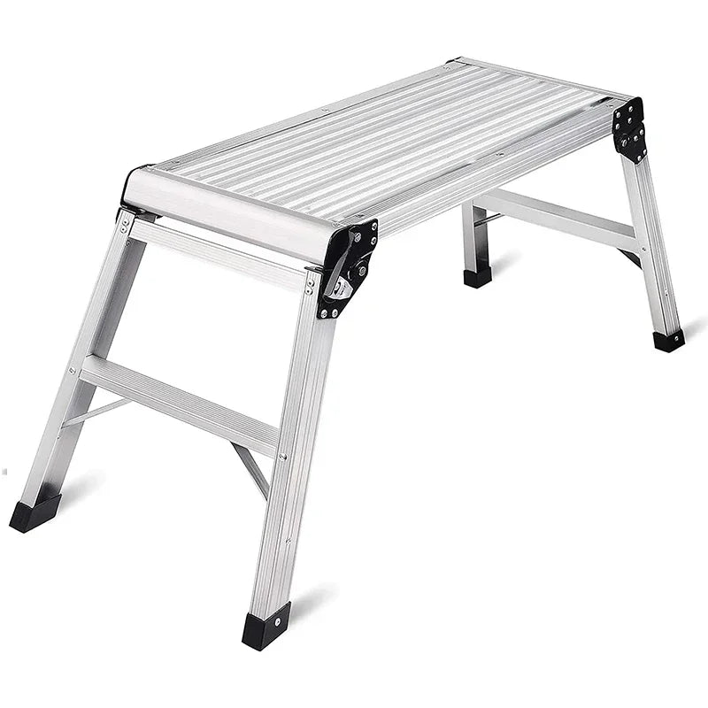 Aluminum Folding Work Platform Ladder 660 Lbs Capacity Non-Slip Feet Drywall Stool Bench 30x12x20 Inch Heavy Duty