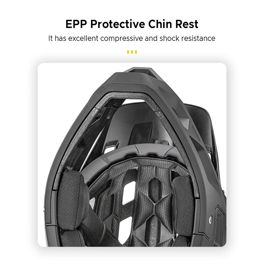 This helmet comes equipped with an EPP chin support for added safety and a removable, washable comfort liner for easy maintenance and hygiene. Available in various stylish colors, you can choose the one that best fits your style. The helmet is available in two sizes: M for head circumferences of 55-58cm and L for 59-61cm, ensuring a perfect fit for most riders.