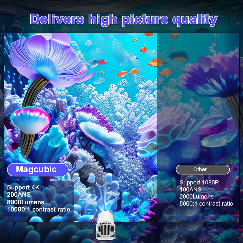 Elevate your entertainment experience with this high-performance digital projector. Offering a native resolution of 1280x720 dpi with support for 4K content, this versatile projector delivers vivid images with 8000 lumens of brightness. Enjoy cinematic viewing at home or outdoors with a projection size ranging from 40 to 200 inches, and a distance between 1.2 to 4 meters.