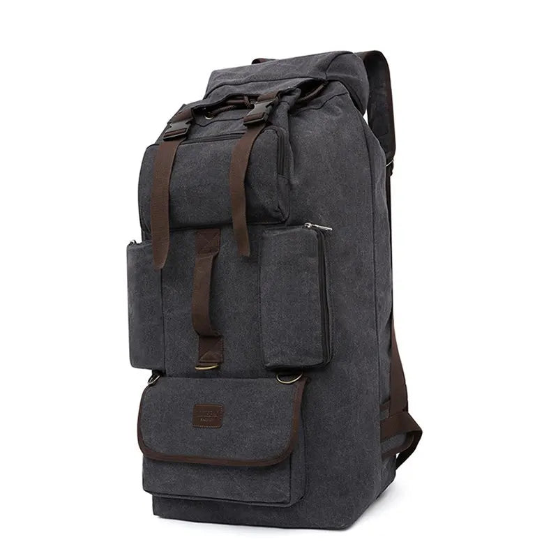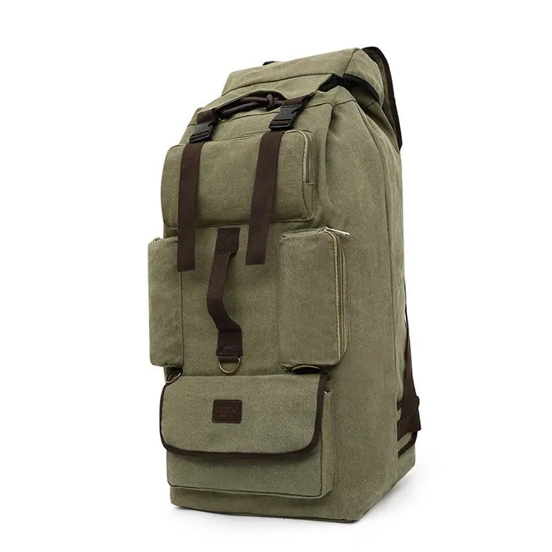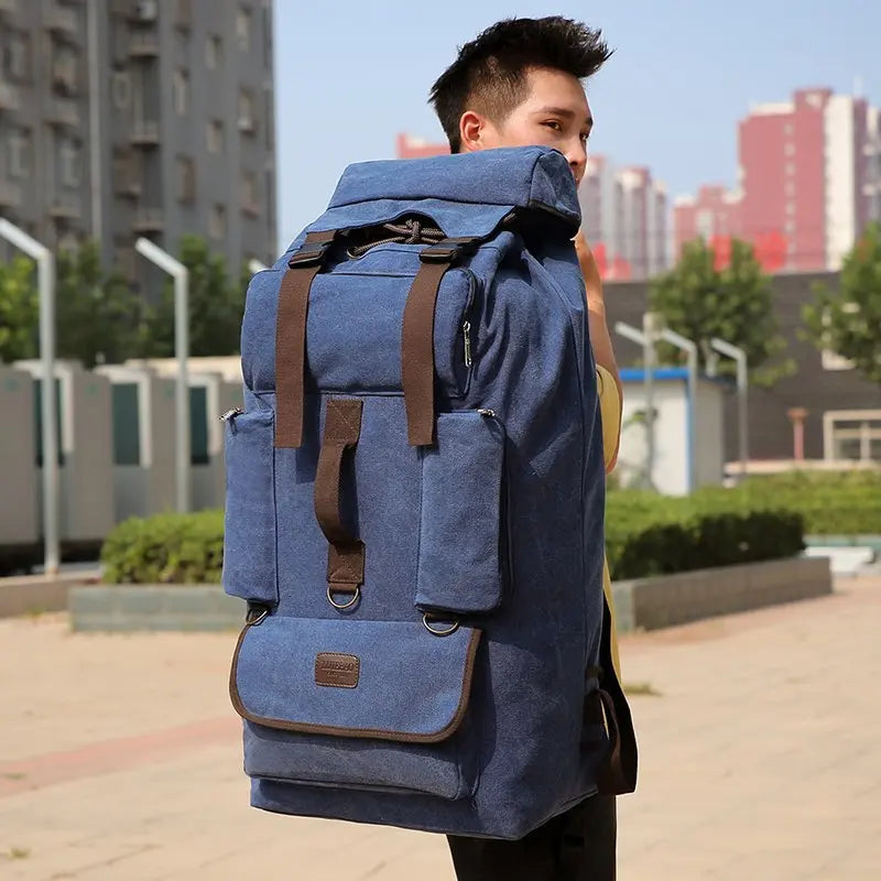 100L Canvas Backpack for Travel & Hiking - Men's Large Capacity Pack with Blanket Storage