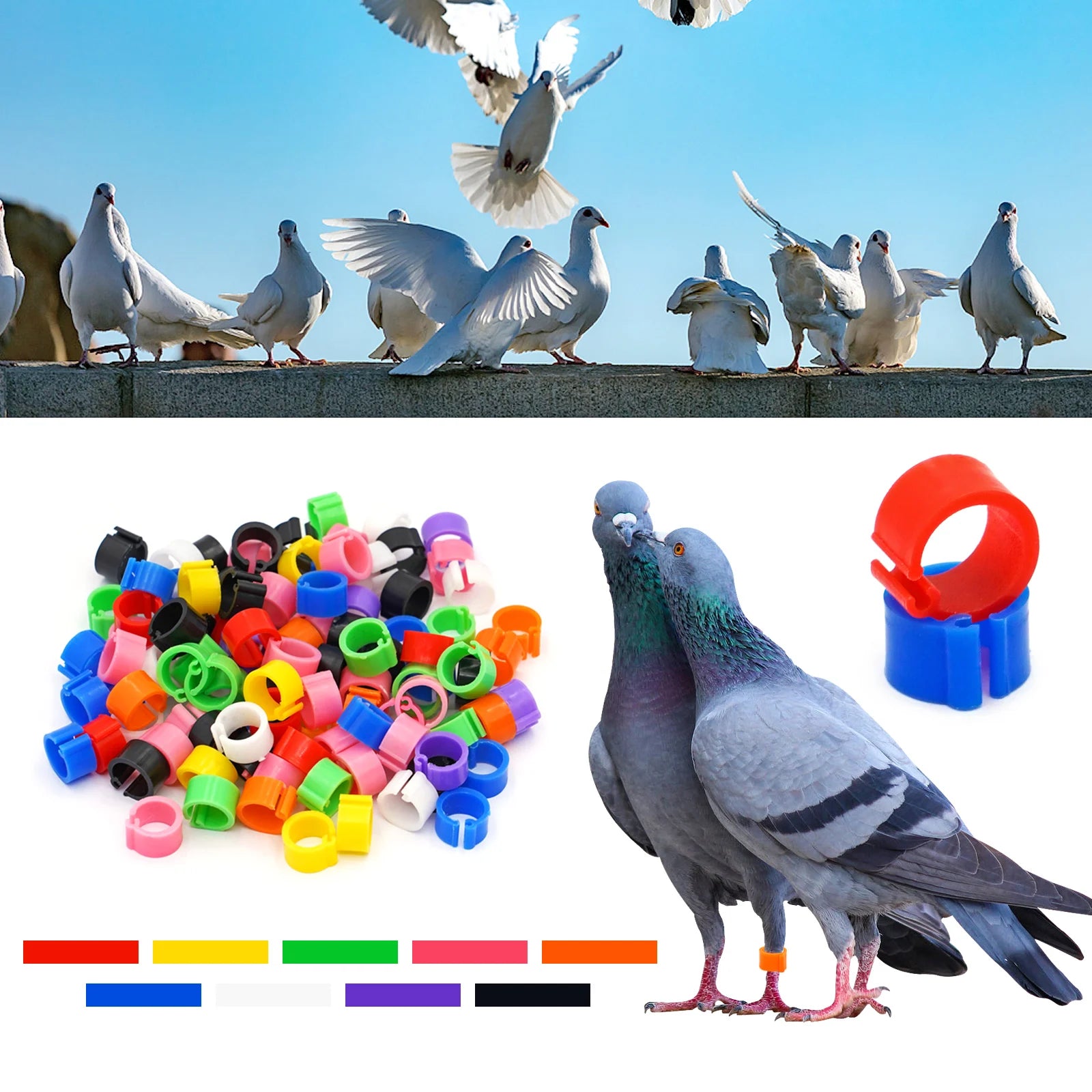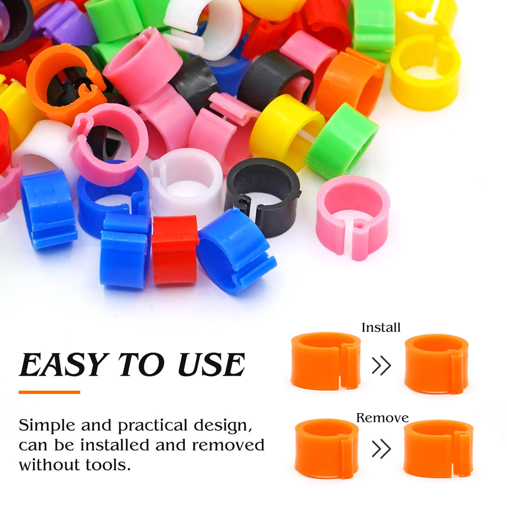 100-Pack 8mm Colored Bird Leg ID Bands for Pigeons Parrots